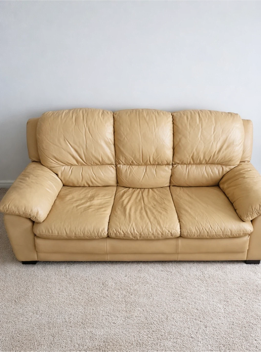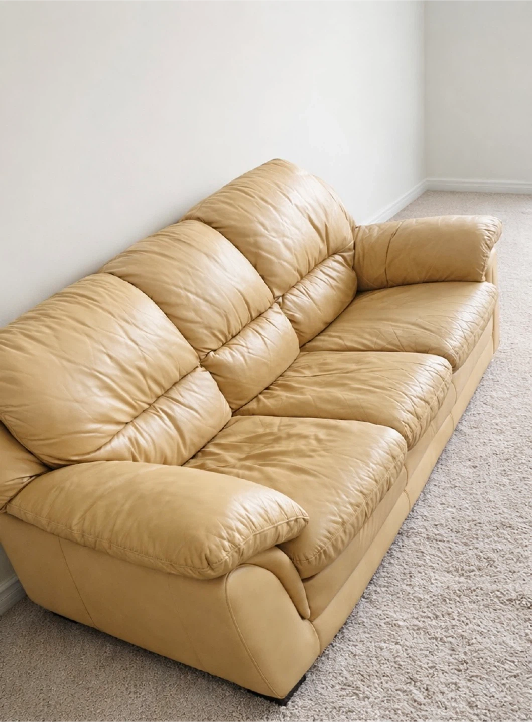 Comfortable and spacious 3-seater sofa made of genuine leather. The neutral beige color works well with any living-room décor.