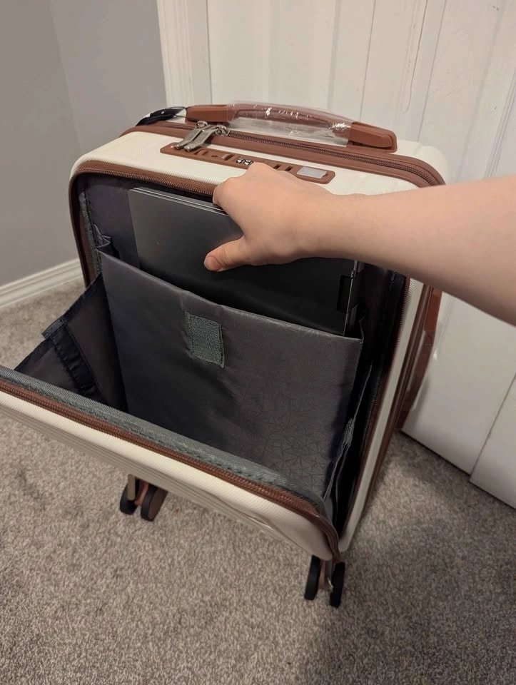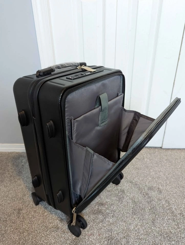 This carry-on comes with a lot of futures; A front pocket for laptop, double locks. Easy to access front pocket, original TSA improved locks and zippers, USB charging port And type-c. Booth to last with double layered abs and 360Β° double Spinning wheels.