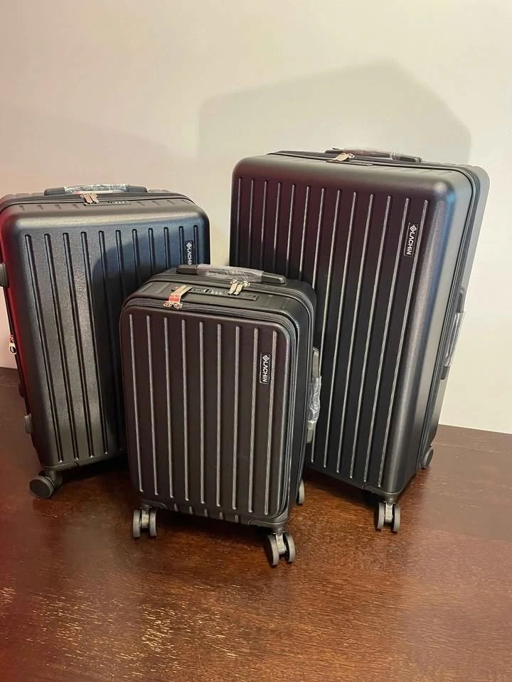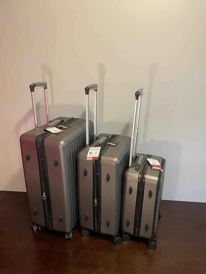 Brand new lightweight hardshell rolling suitcase set — includes a 20" carry-on, 24" medium, and 28" large check-in.