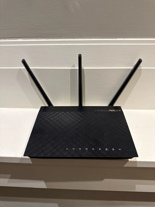 This is an ASUS RT-ACRH15 dual-band WiFi router, perfect for enhancing your home network. This unit is ready to plug and play. Specifications: * Dual-Band: 2.4 GHz and 5 GHz bands for flexible connectivity * Wireless Standard: Supports 802.11ac for faster speeds * Ports: Includes LAN and WAN ports for wired connections.
