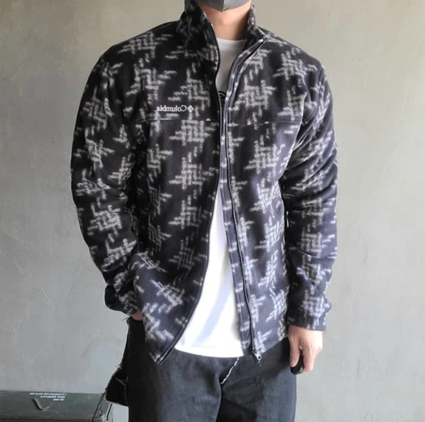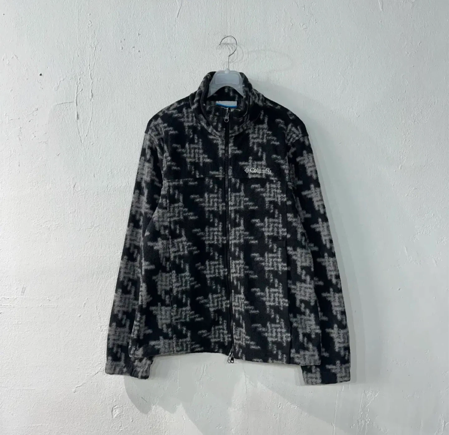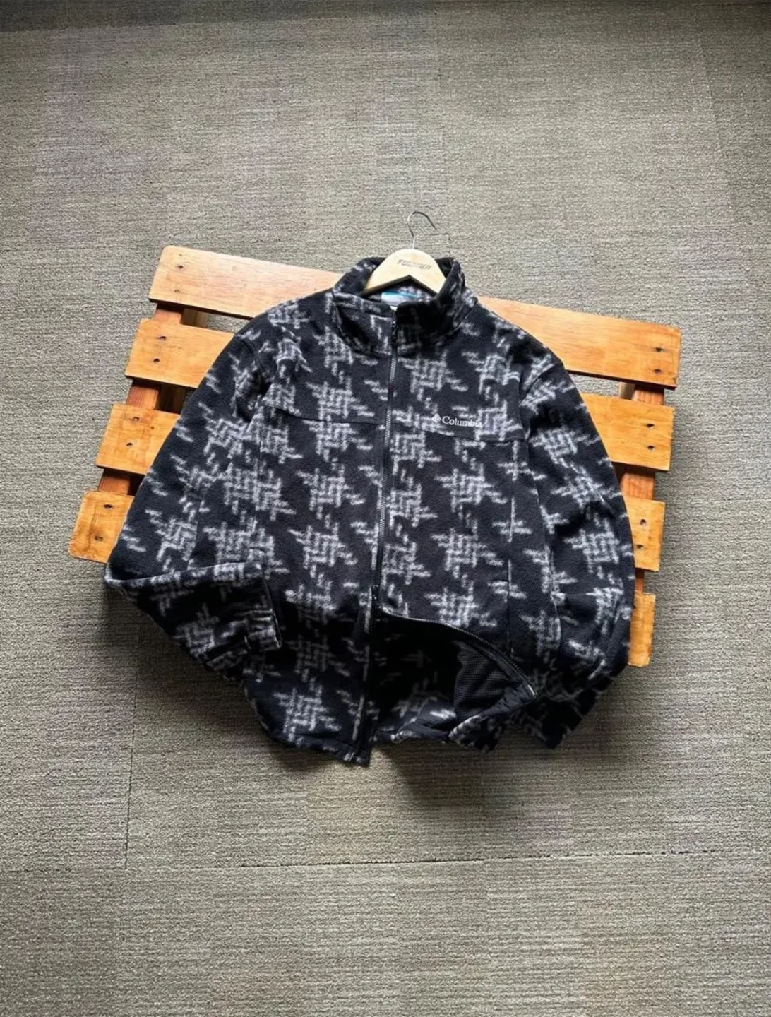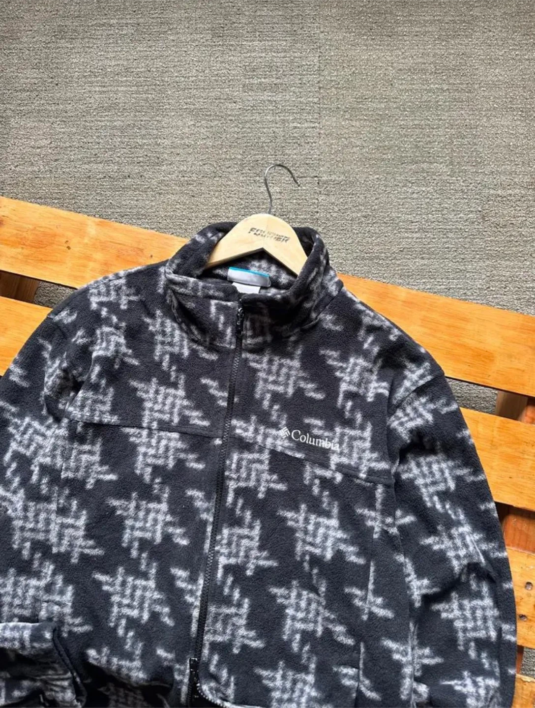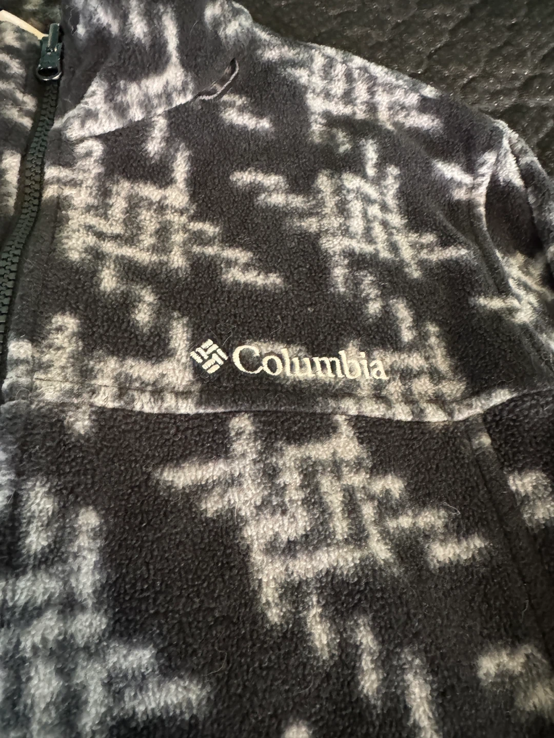 Cozy Columbia fleece jacket with a unique black and white pattern! It's in great condition and perfect for layering during those chilly Canadian evenings. A stylish and warm addition to your wardrobe!