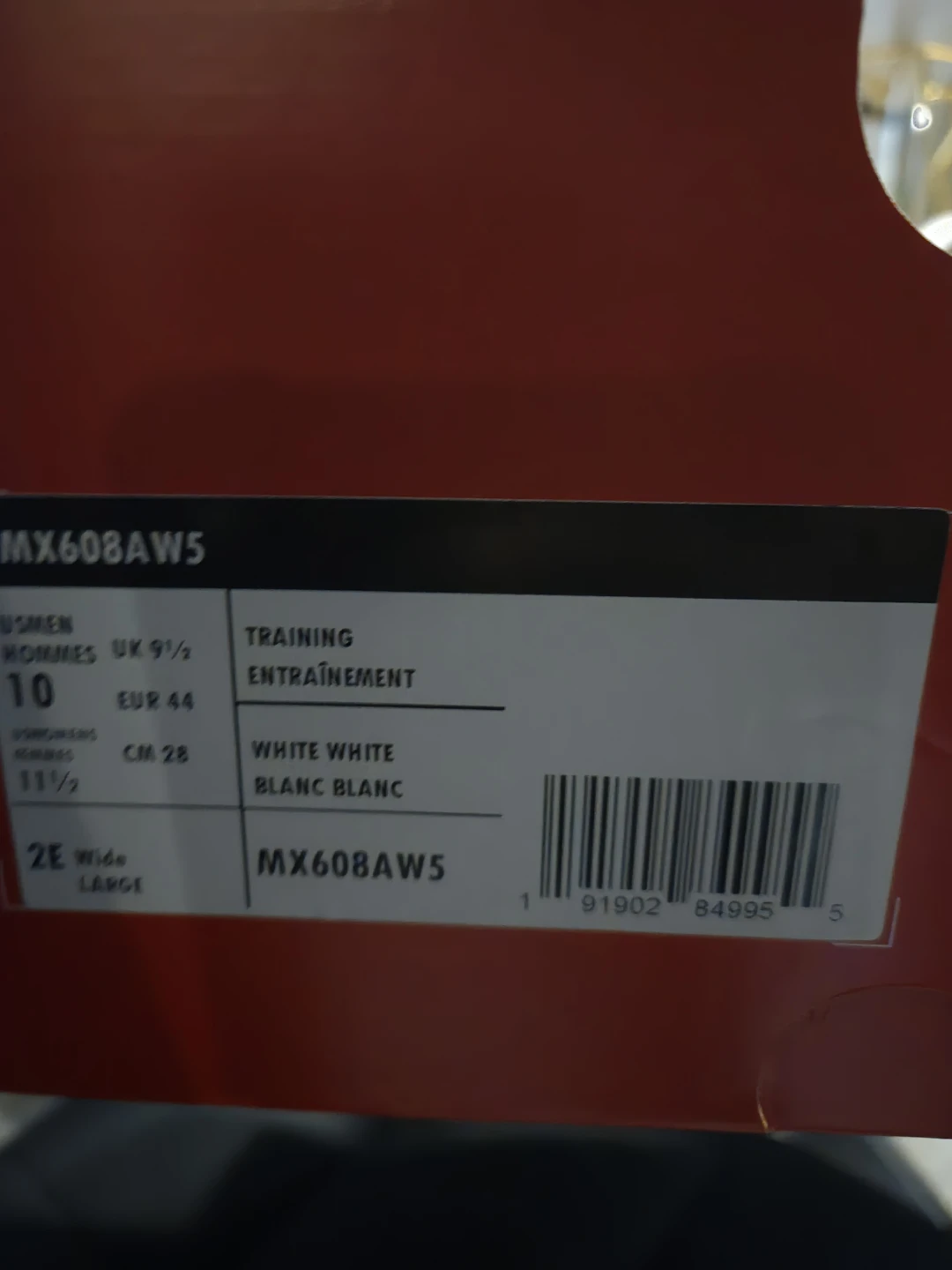 I'm selling a pair of New Balance MX608AW5 training shoes in US men's size 10. They are white and in new condition. The box is included!