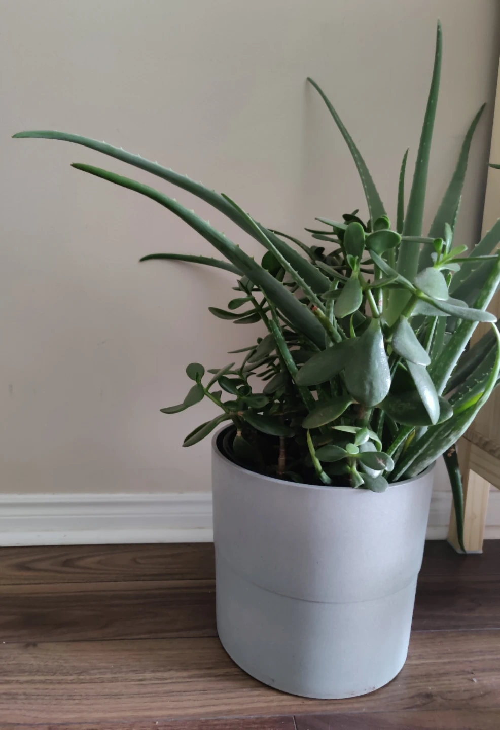 I'm selling a lovely potted plant featuring both aloe and jade! It's in great condition and ready to add some greenery to your space.