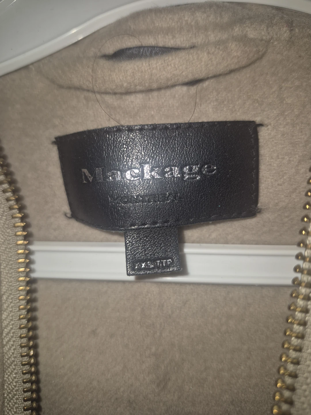 Selling a Mackage Montreal coat in size XXS/TTP. It's in good condition and ready for a new owner! No rips or stains . Its nice and warm. Tan color and zips all the way up to the top of the sweater..