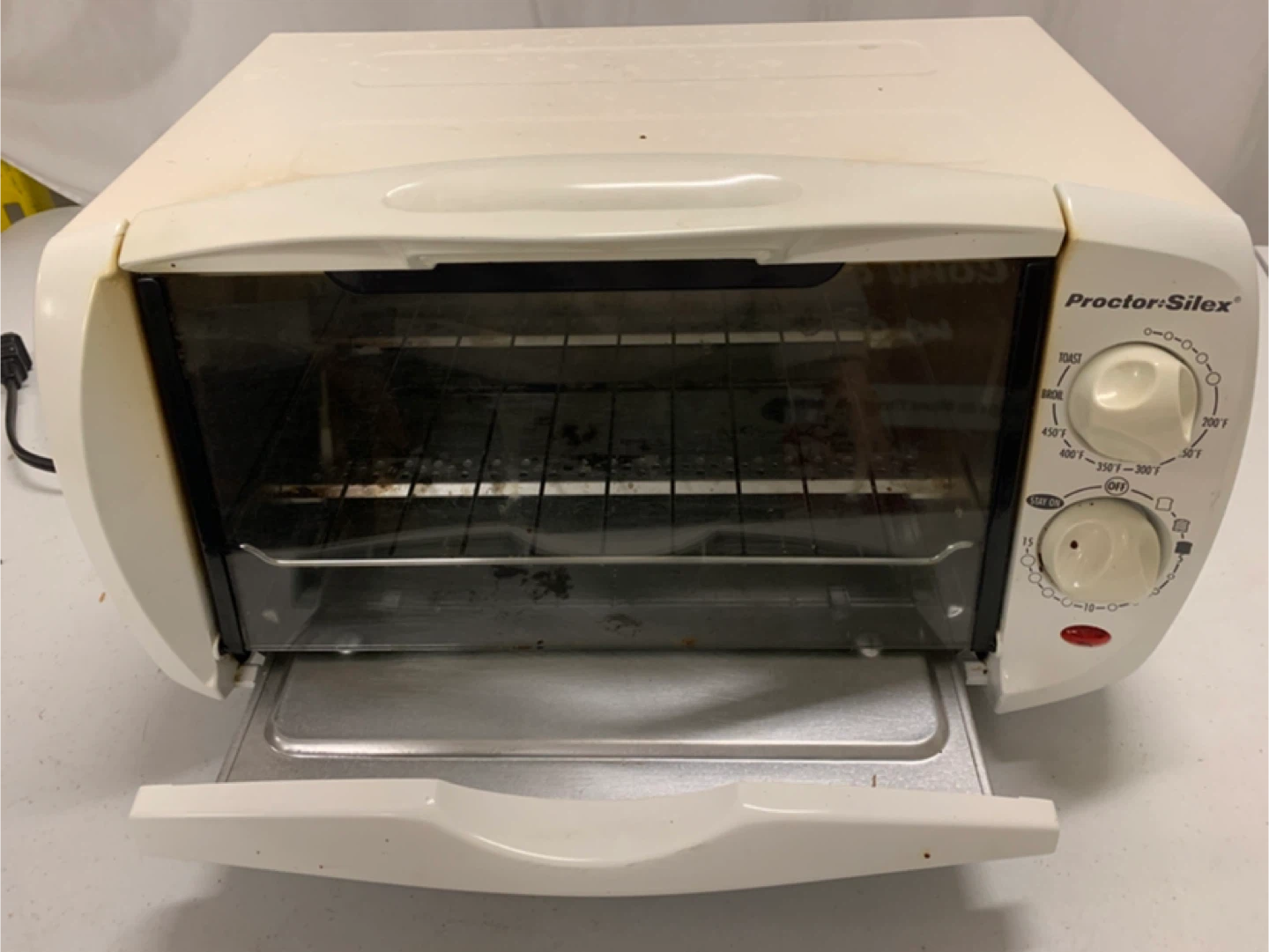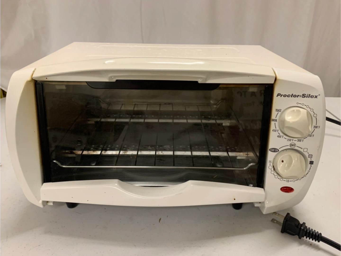 Selling a Proctor Silex toaster oven. It has some signs of use, but is fully functional. It has settings for toast, broil, and bake. The temperature ranges from 200°F to 450°F. Perfect for small kitchens or quick meals!