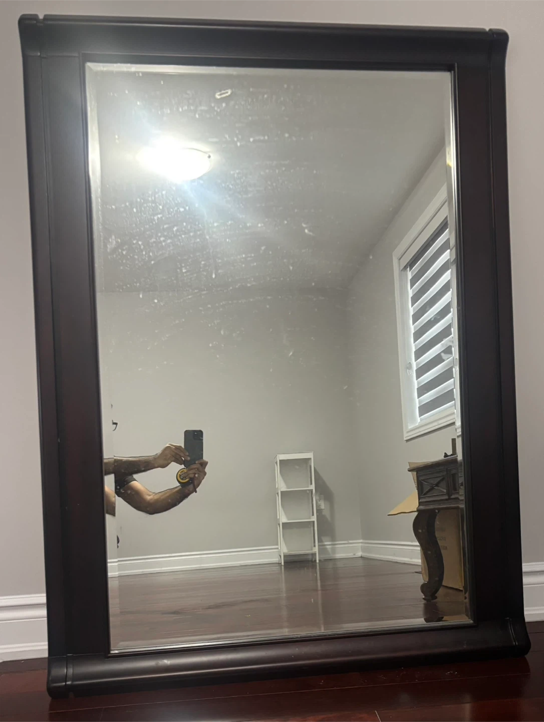 Selling a large framed wall mirror. It's in great condition and ready to brighten up any room!