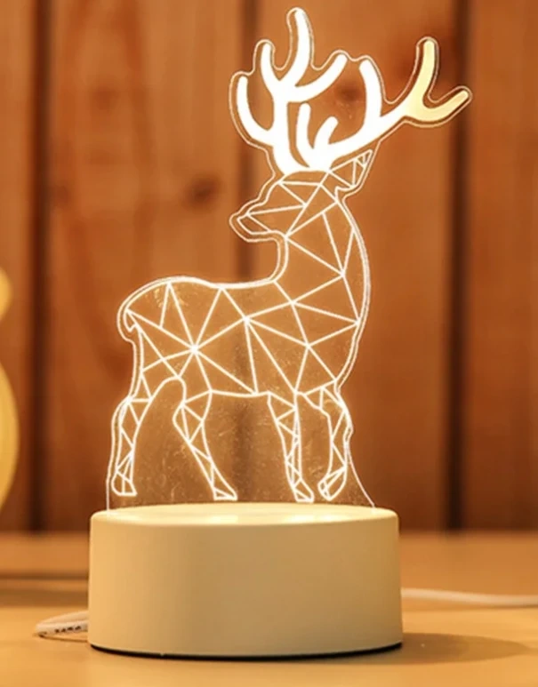 Here's a cute deer acrylic LED night light! It features a geometric design and a warm, inviting glow. Perfect for adding a touch of whimsy to any room Amazing for animal lovers and nature lovers