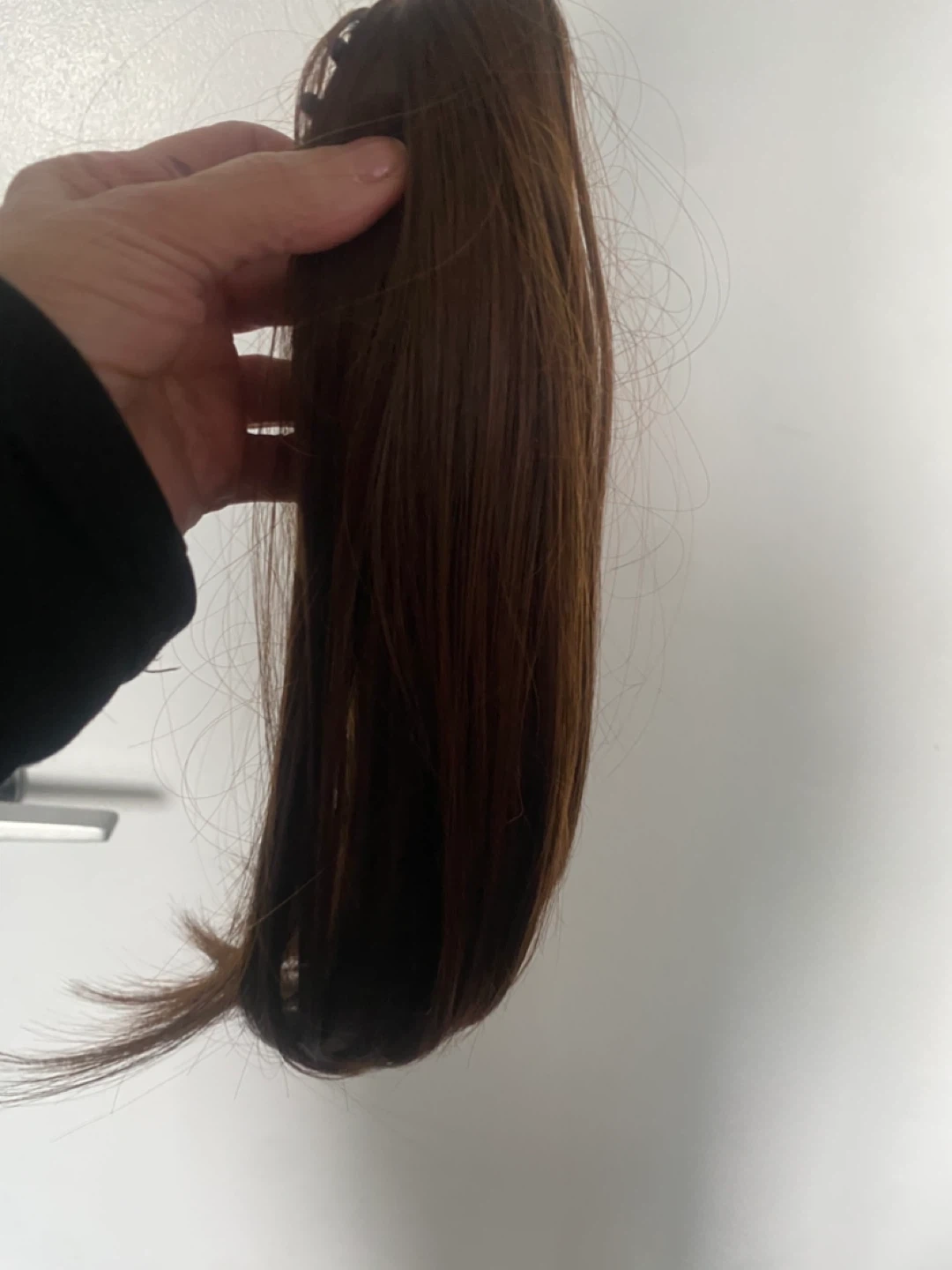 Selling a med brown hair extension ponytail piece. It attaches with a comb clip. It's in new condition! Never used