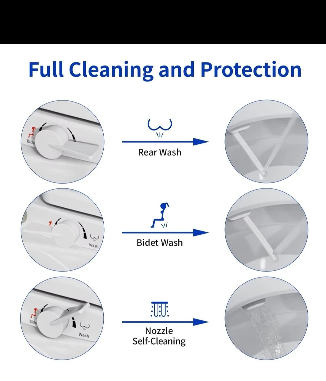 Dual Spray Nozzles: Dedicated "Rear Wash" and "Bidet/Feminine Wash" for a personalized clean.