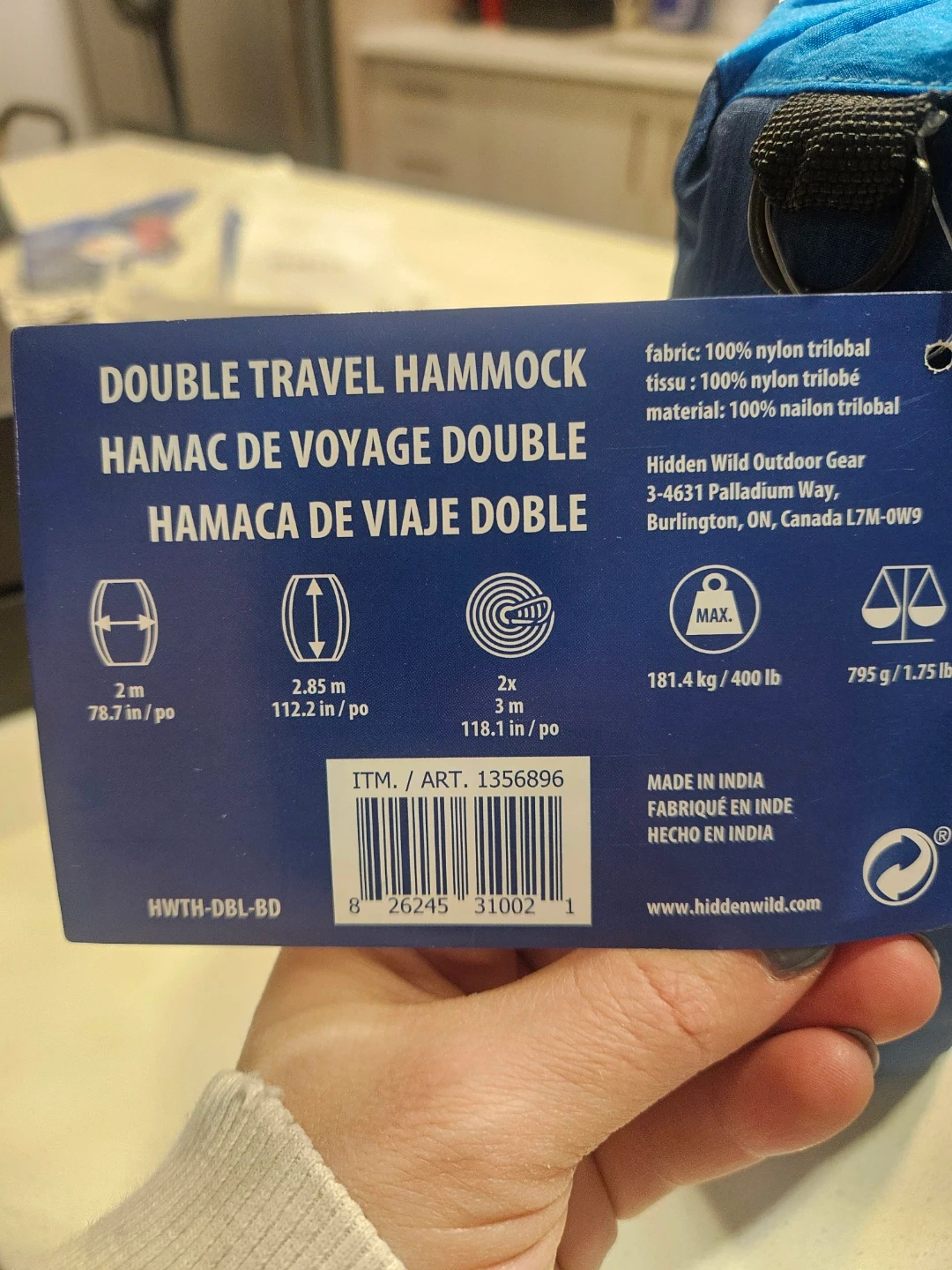Selling a brand new Hidden Wild Double Travel Hammock! It's made of 100% nylon trilobal fabric.