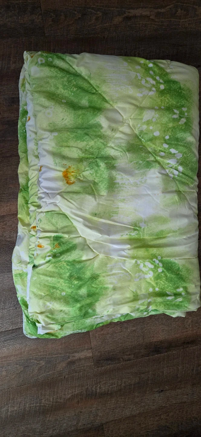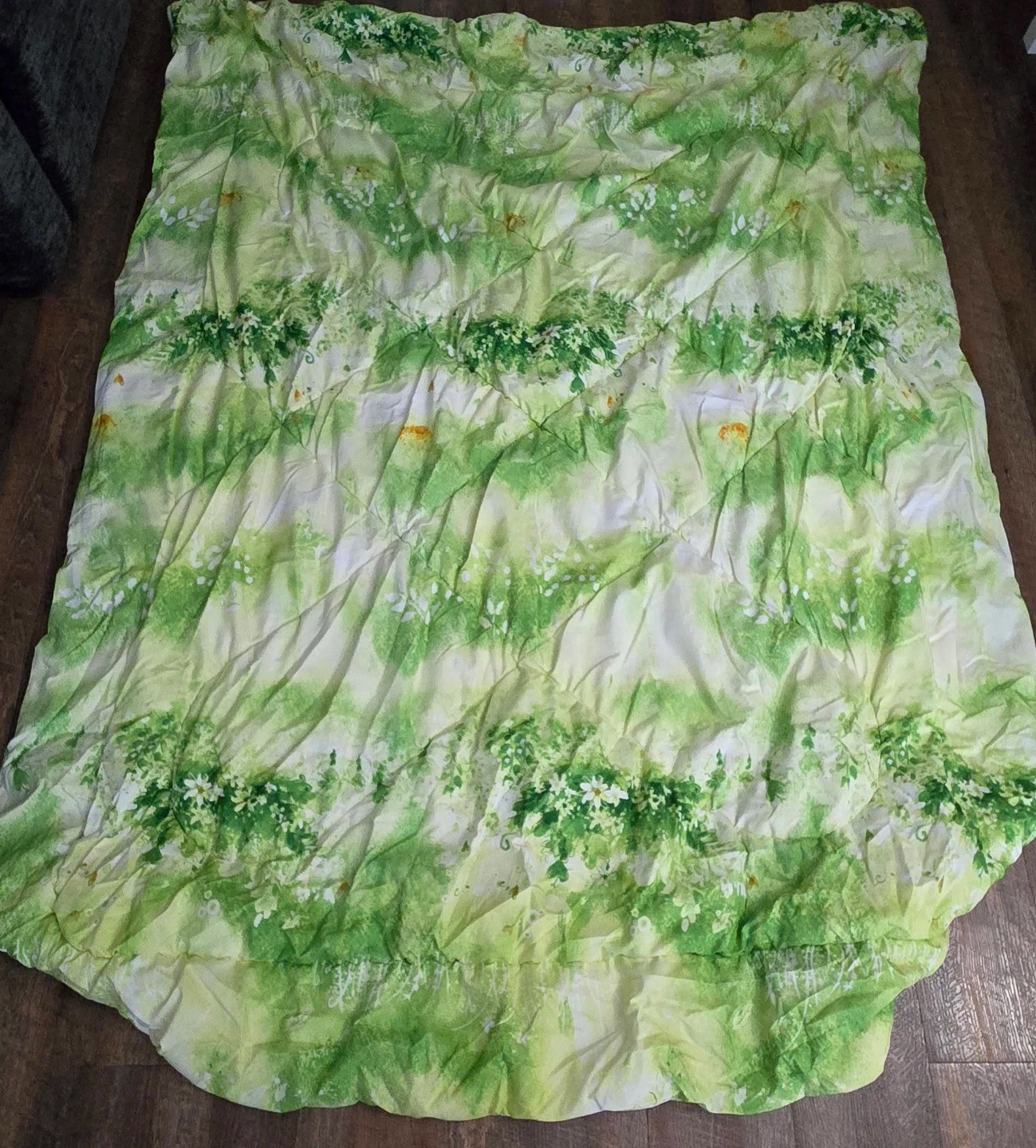 Selling a gently used comforter with a lovely green floral pattern. It's in good condition and would be a great addition to any bedroom!