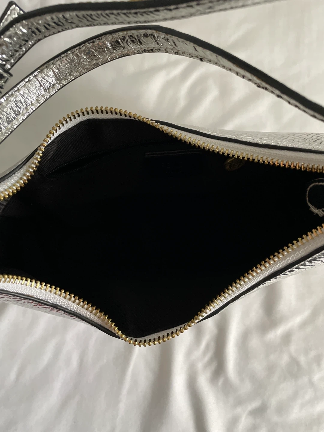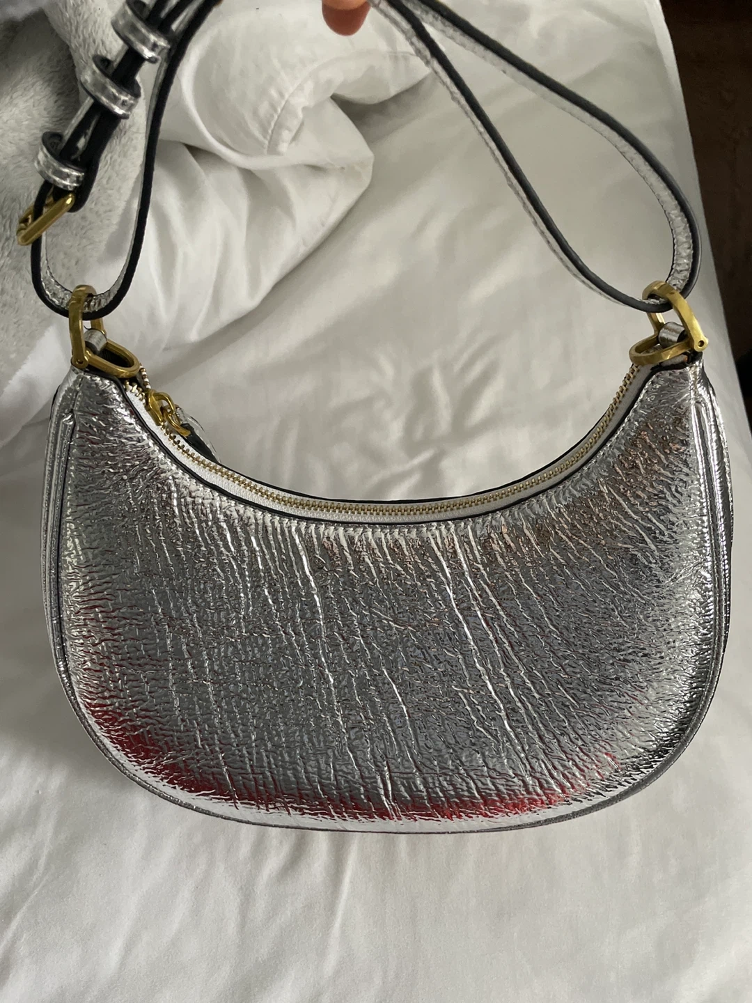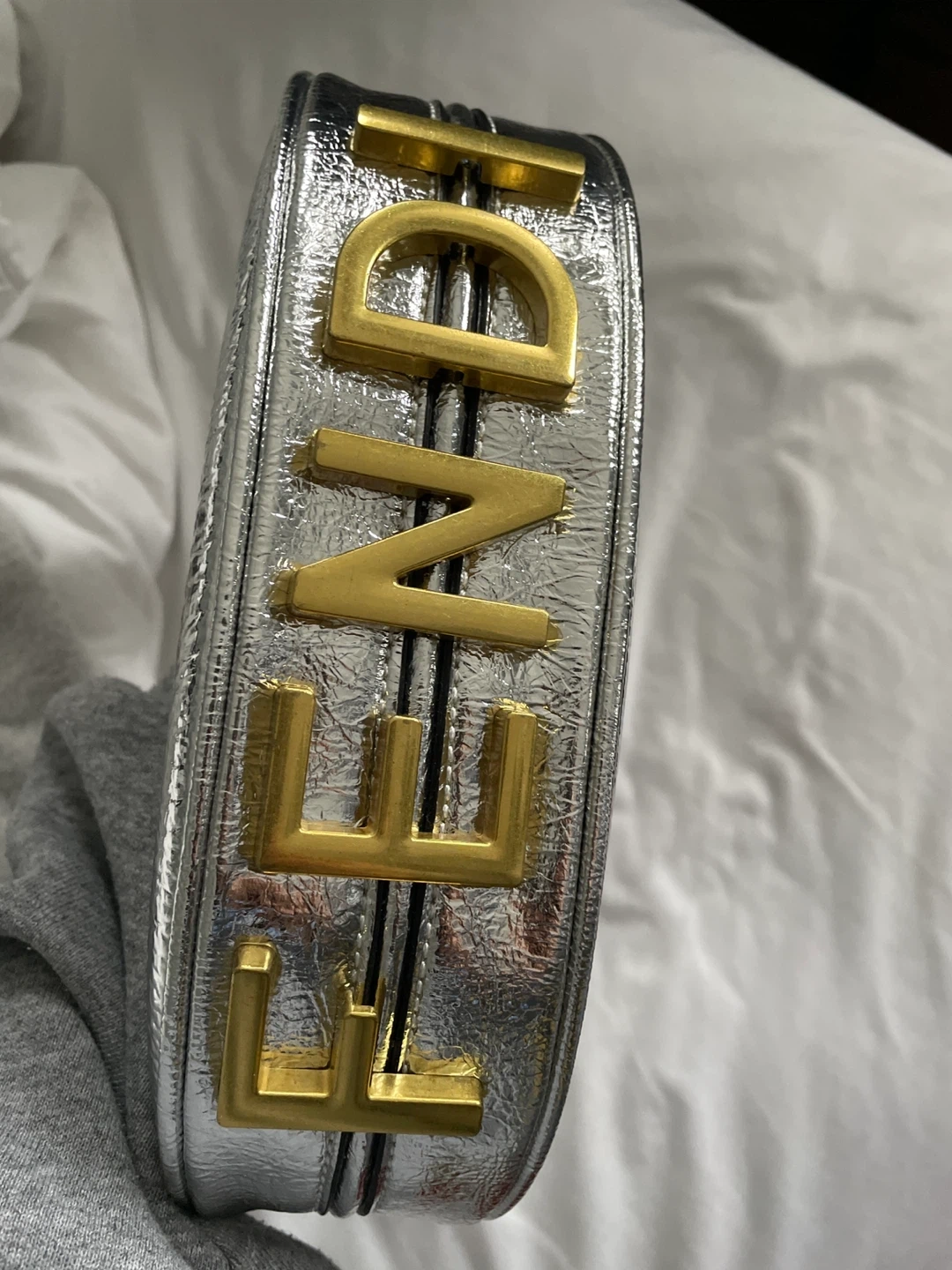 Selling a Fendi First Small Baguette in silver. This bag is in great condition and perfect for adding a touch of sparkle to any outfit! Features the Fendi logo in gold hardware. Bought from vintage store in Paris. Closet clean out!!!! Worn once.