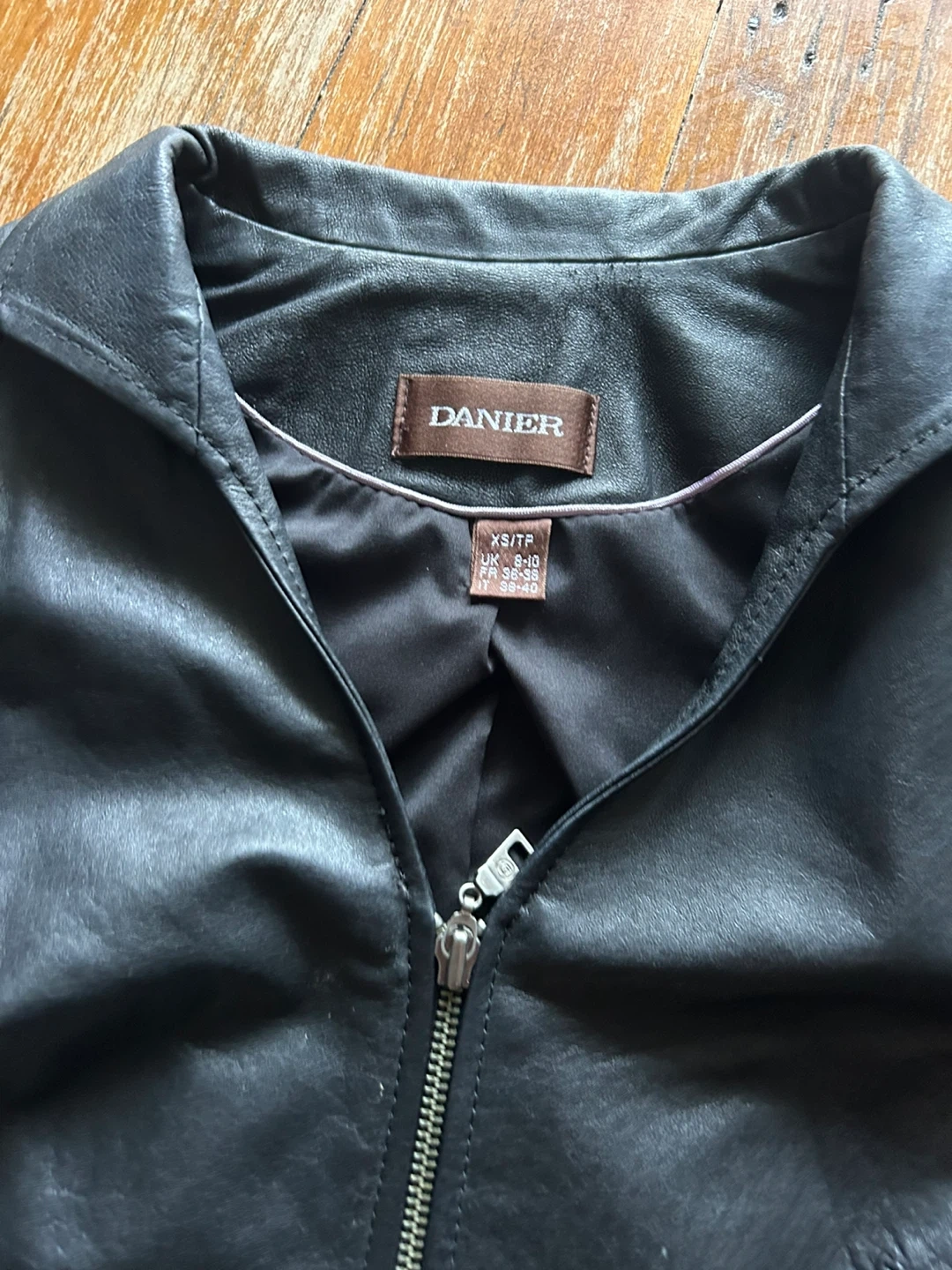 Selling a Danier black leather jacket in size XS. It's in pristine condition and would be a great addition to your wardrobe!