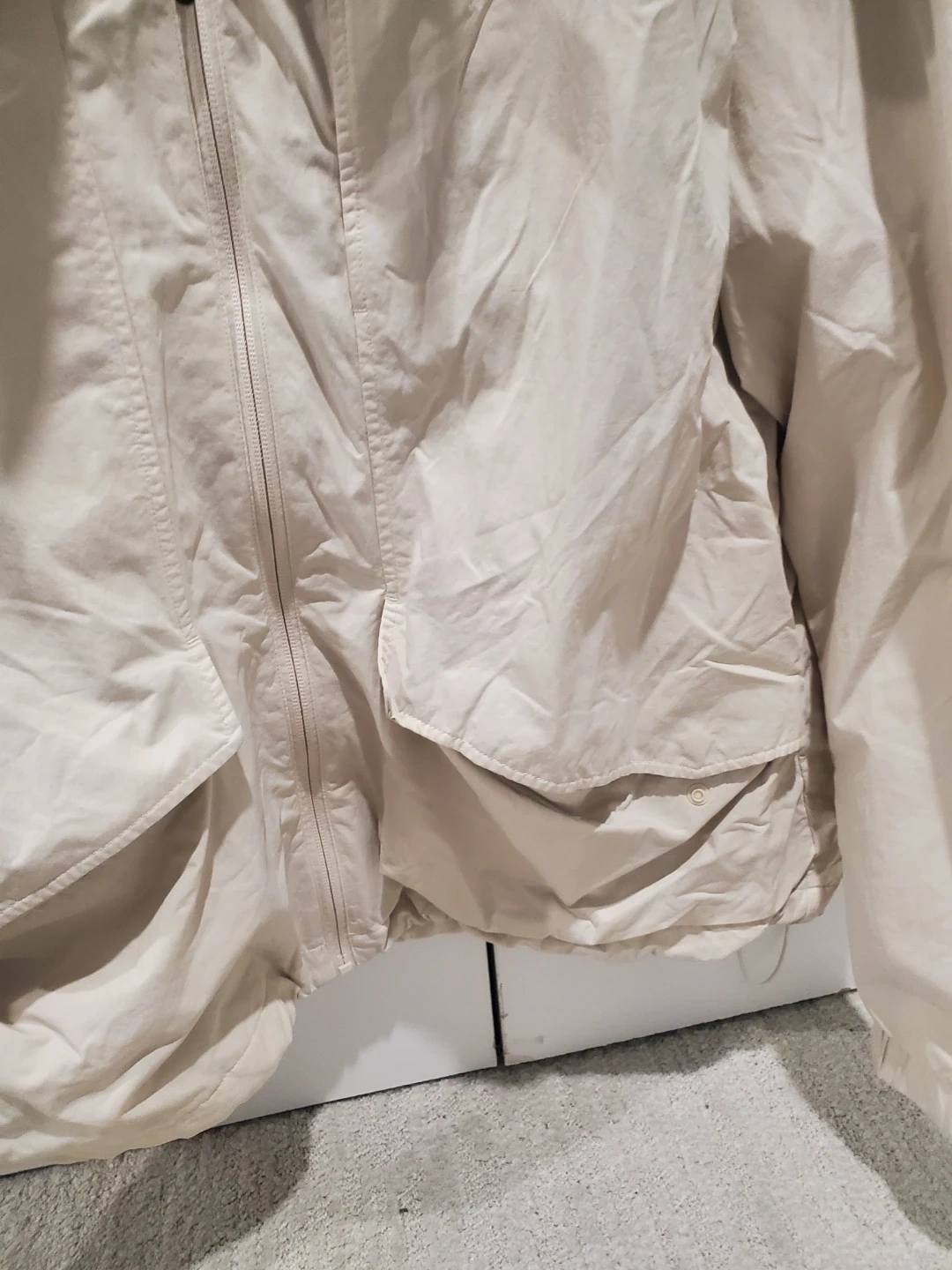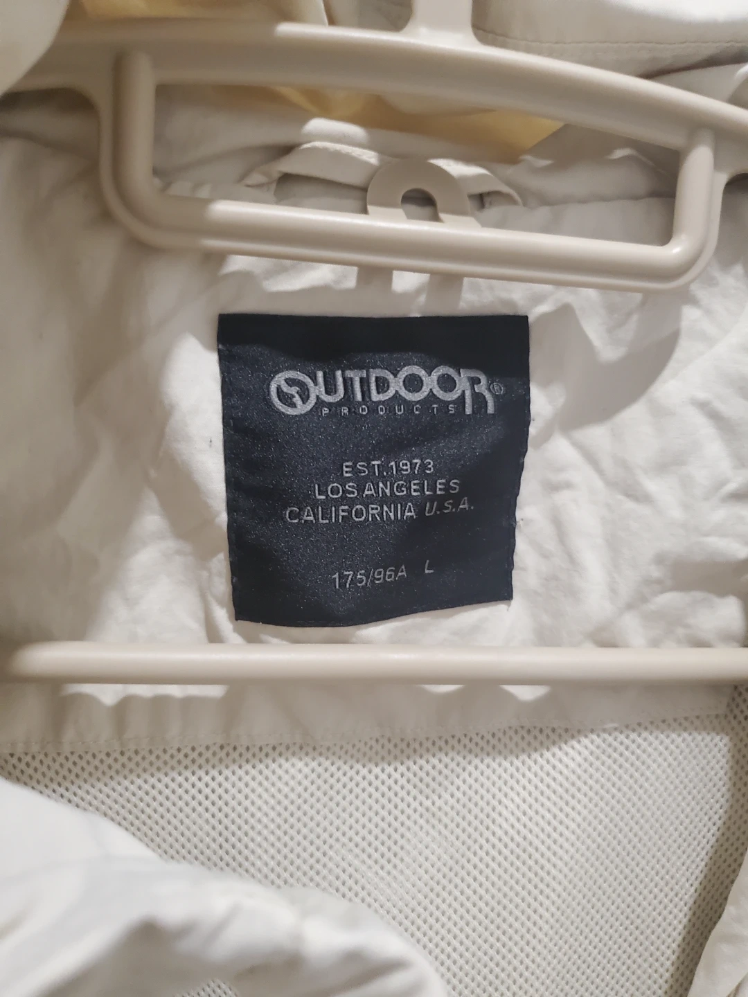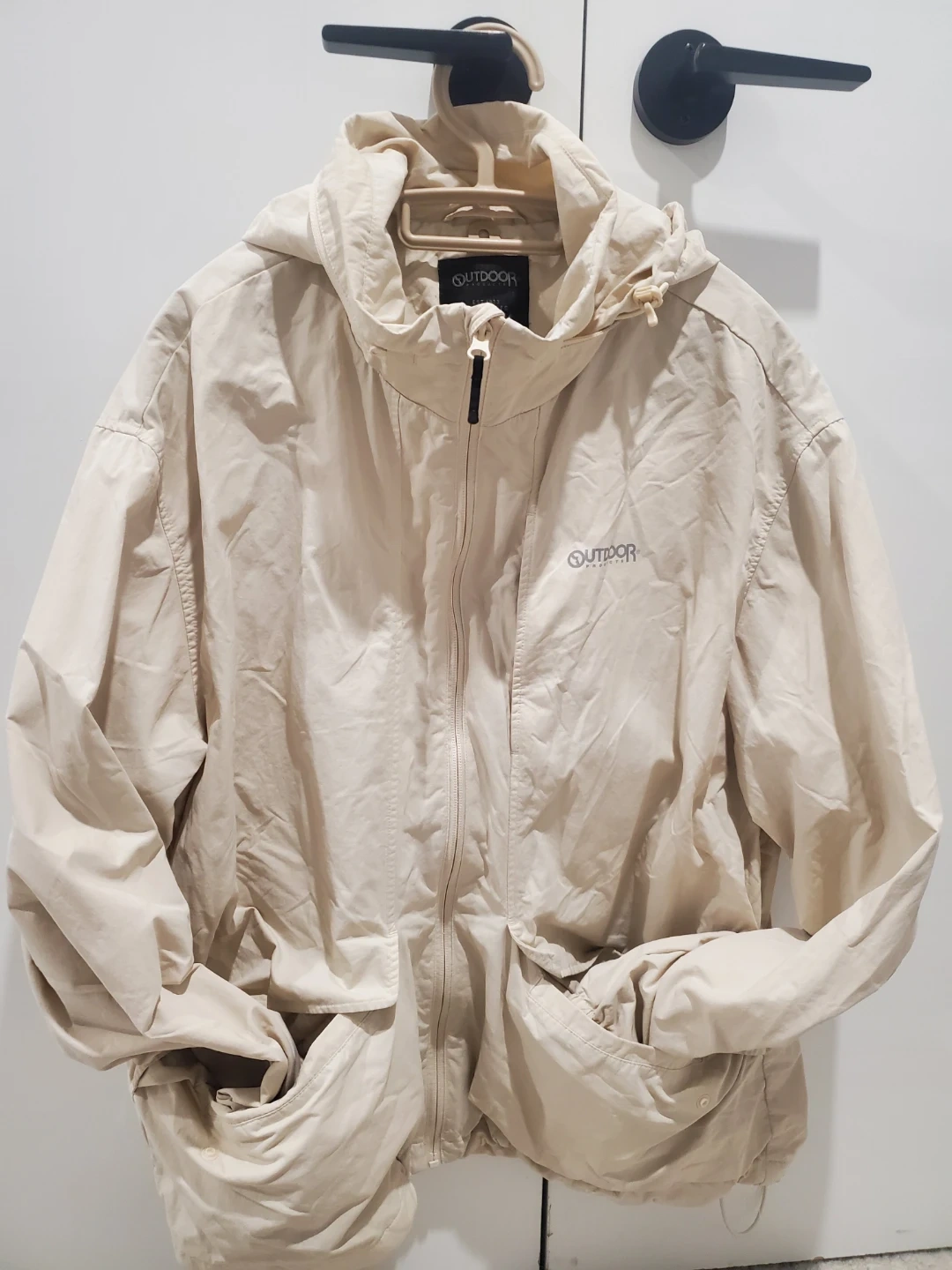 Here's a lightweight beige jacket from Outdoor Products! It's in great condition and ready for a new owner. Perfect for layering or wearing on its own during those breezy days