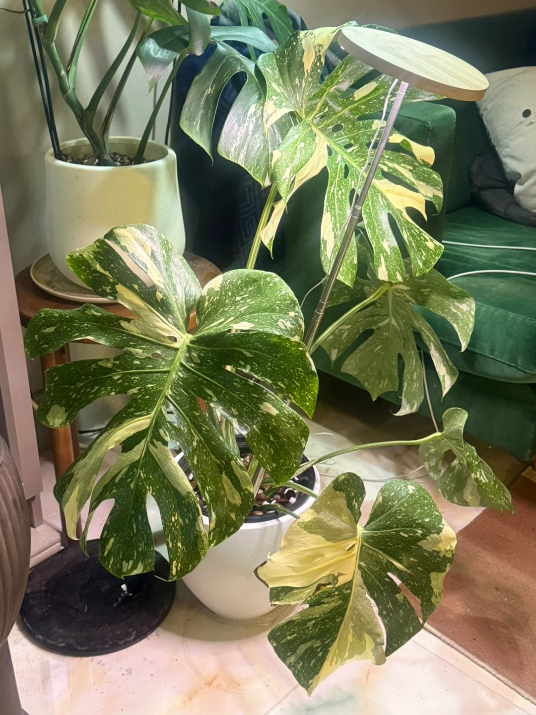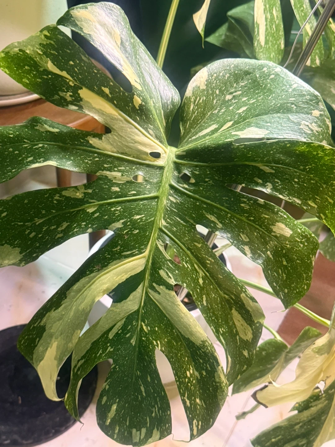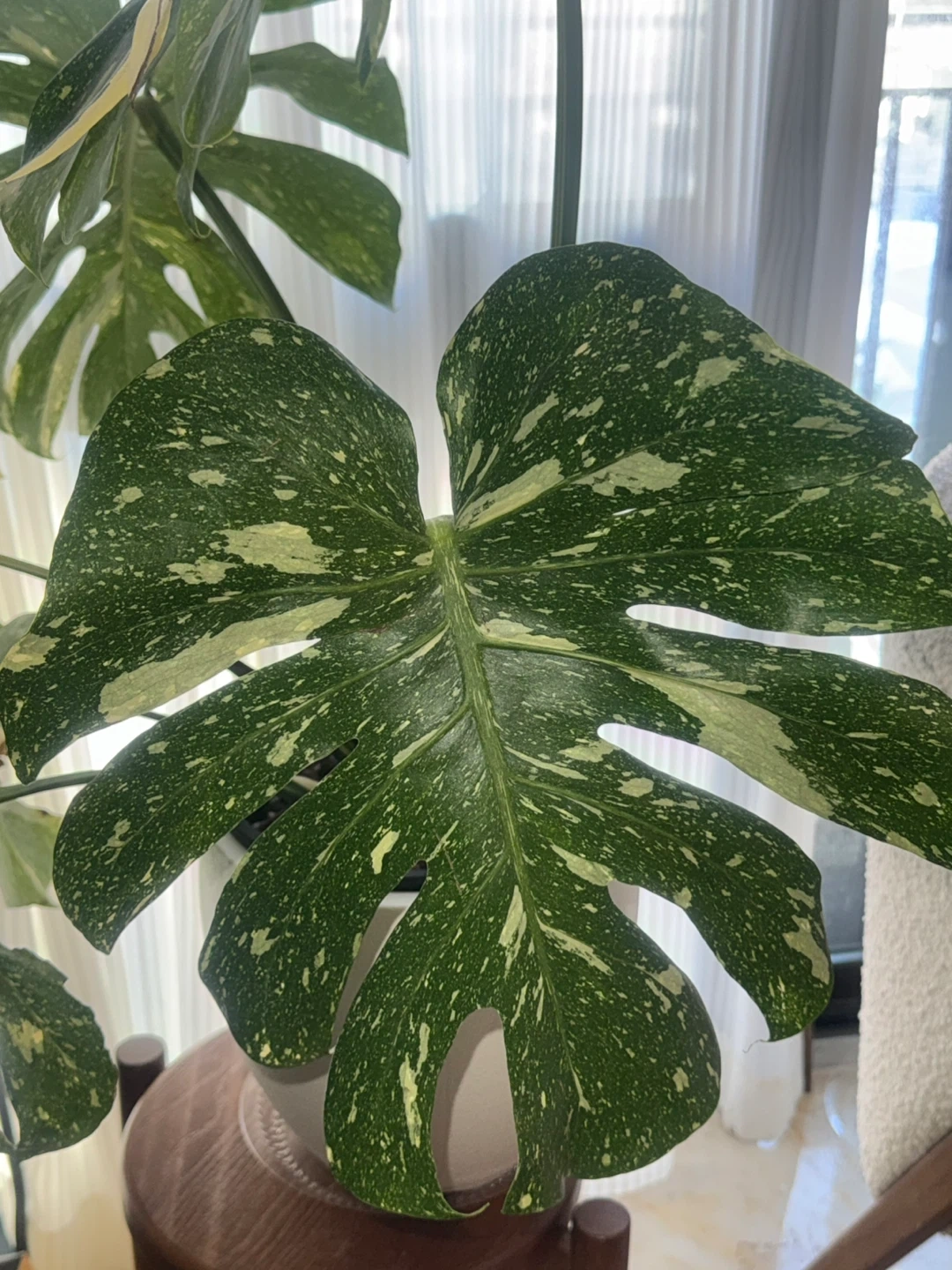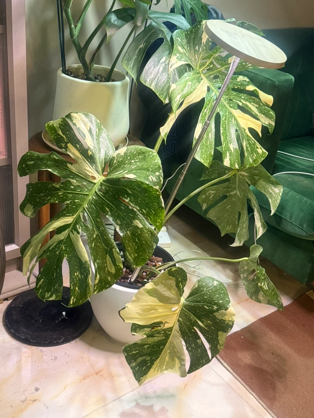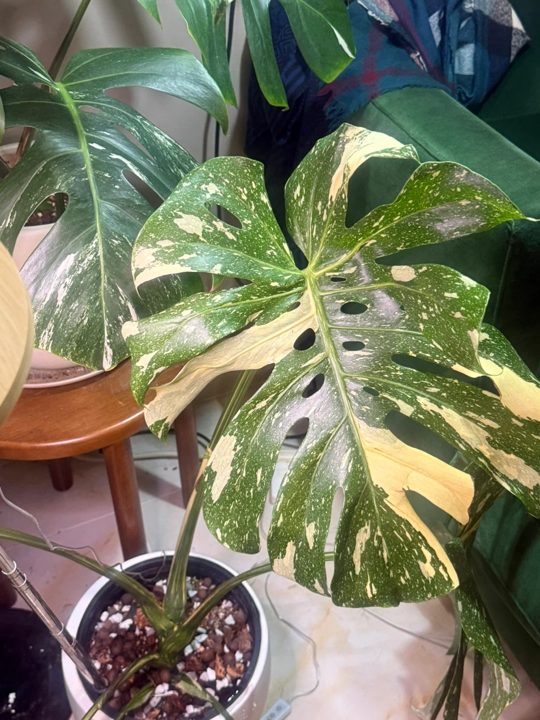 Highly variegated monstera Thai constellation, large size whole plant 33” tall, intense and high volume variegation, might be named differently here or there like crème brûlée or milky galaxy, but it’s all Thai con mutation, so I’d just go with Thai con (deliciosa, large form). planter NOT included. Pick up from queens elmhurst