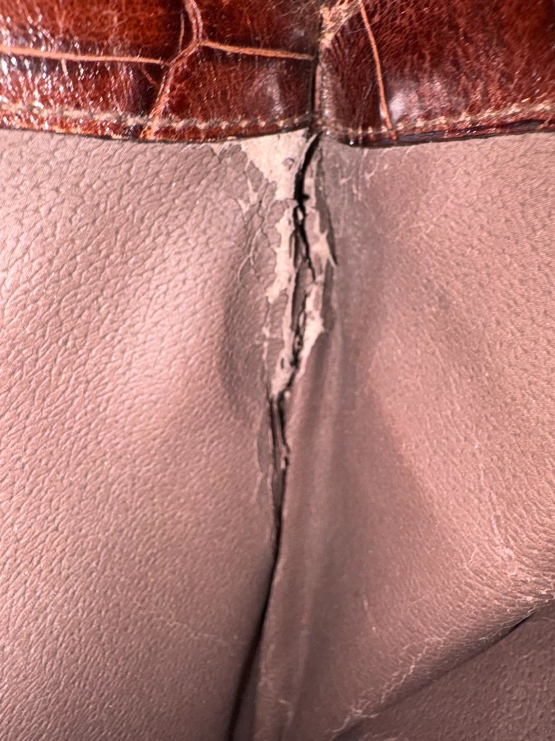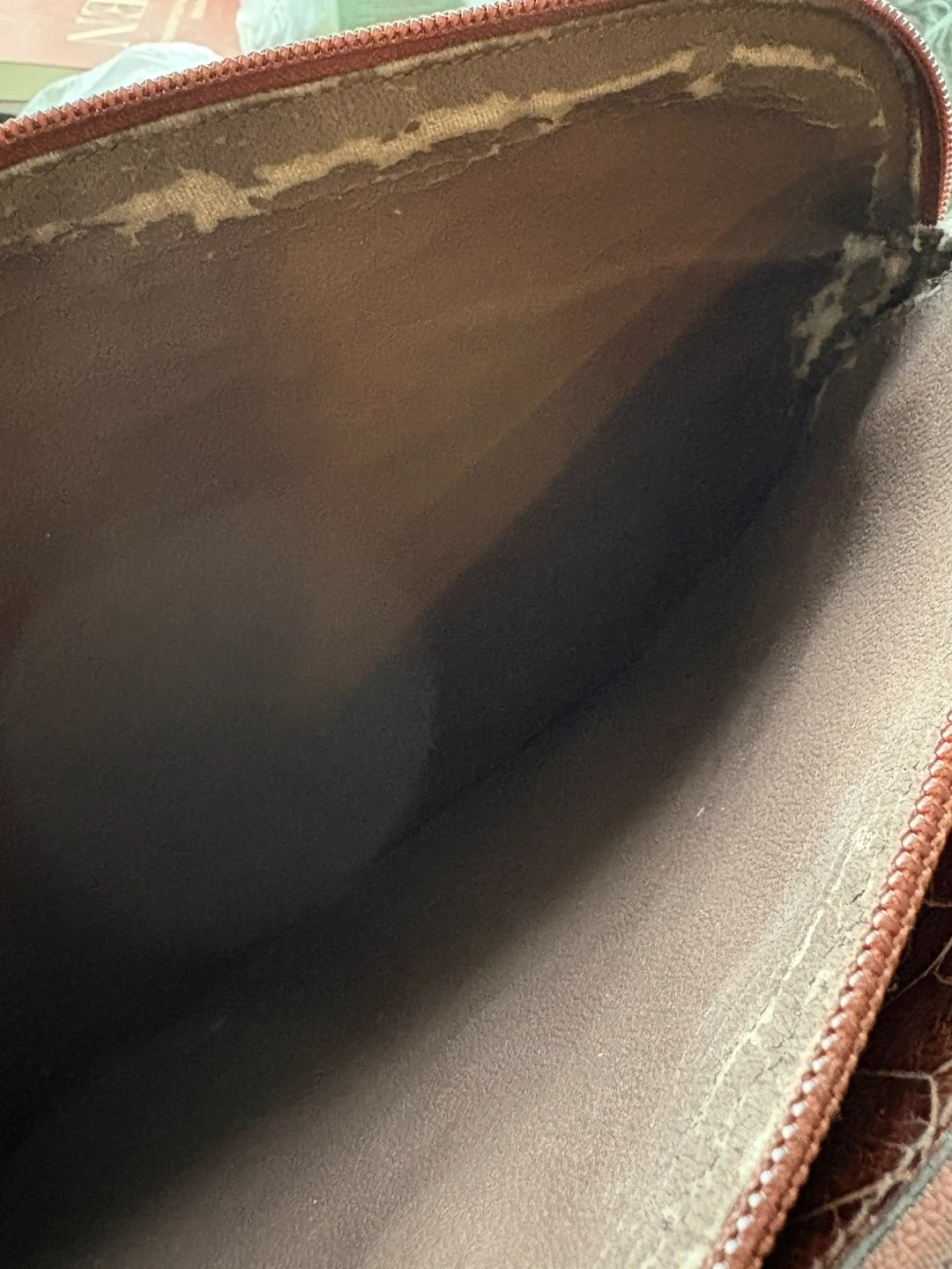 There is some wear/disintegration on the edges of the lining as pictured. There is only some light wear on the outside.