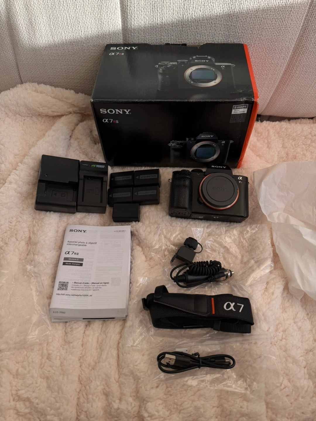 Selling a Sony a7R II Full-Frame Mirrorless Interchangeable Lens Camera, Body Only (Black) (ILCE7RM2/B). It comes with the box and accessories like the charger, lots of extra batteries, and strap. Works perfectly—great for photography enthusiasts! Bought new for $3,198 + tax.