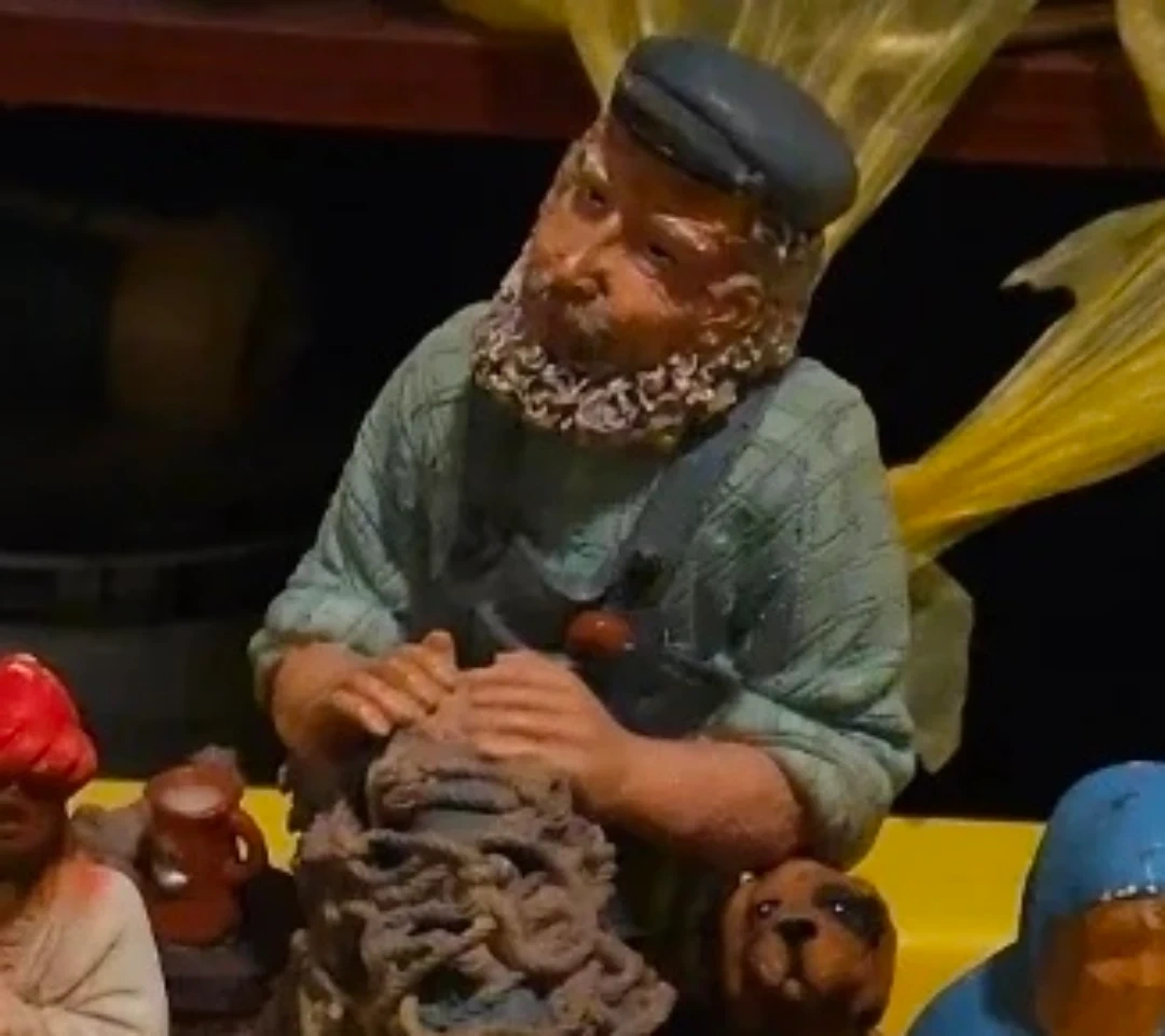 Selling a Beachcombers Intl Inc 1994 "Old Salts" Collection figurine titled "Mending Nets" It's a charming piece from the 1995 series, depicting a fisherman mending his nets. The figurine is made in China and has a lovely rustic feel