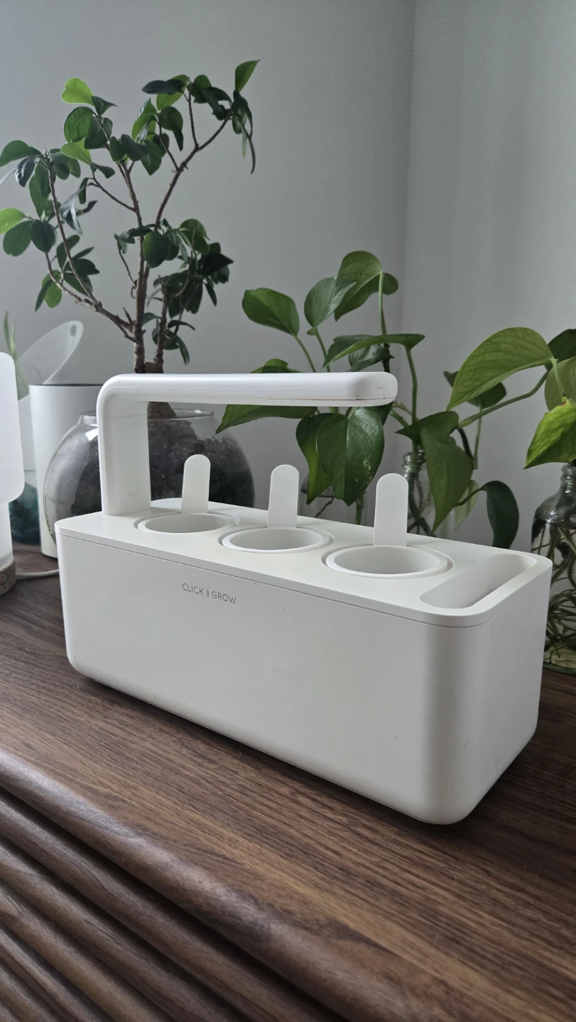 Click & Grow smart indoor garden in good working condition. Super easy way to grow herbs or plants indoors with built-in grow light.
