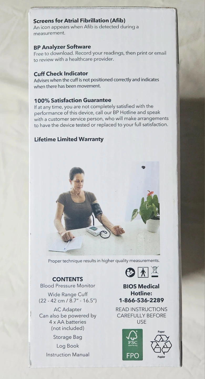 Brand new (sealed) BIOS Diagnostics Blood Pressure Monitor with Atrial Fibrillation Screening! It's designed for home use and provides readings for the upper arm.