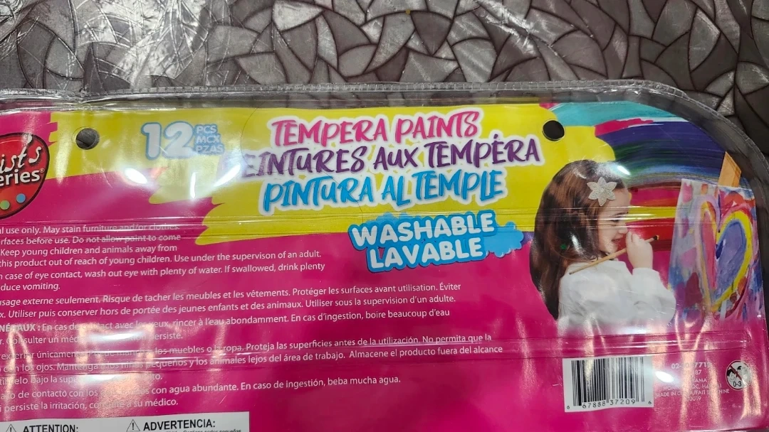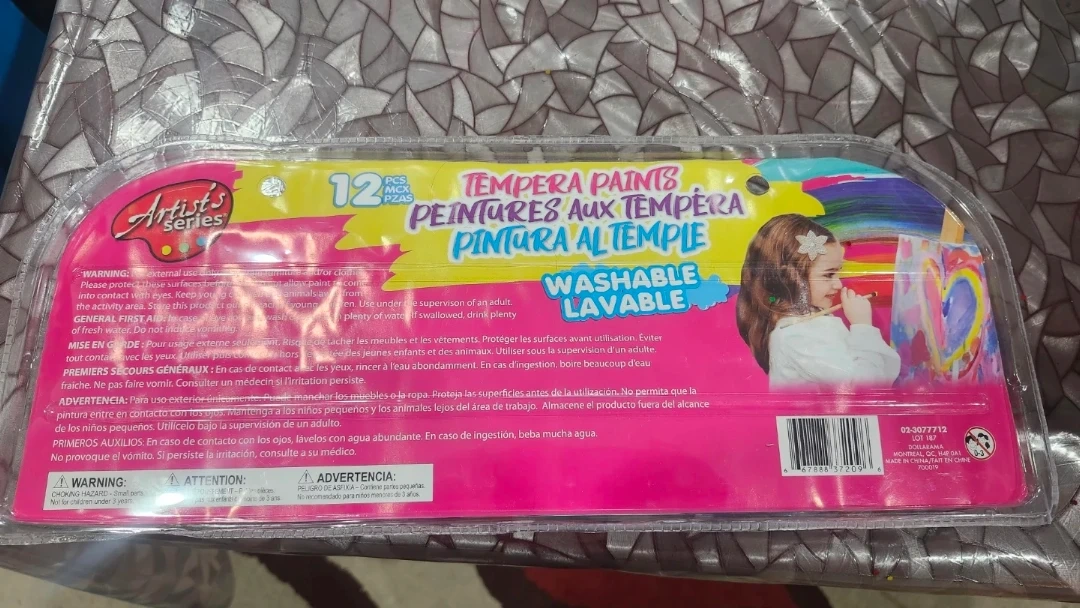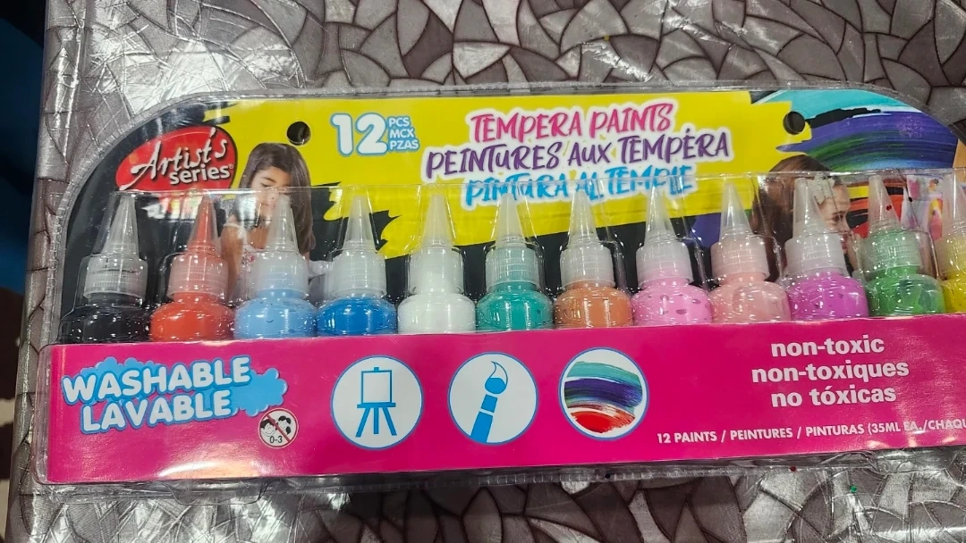 Selling a brand new sealed set of Artist's Series tempera paints! This set includes 12 different colours in easy-to-use bottles. They're washable and non-toxic, perfect for young artists