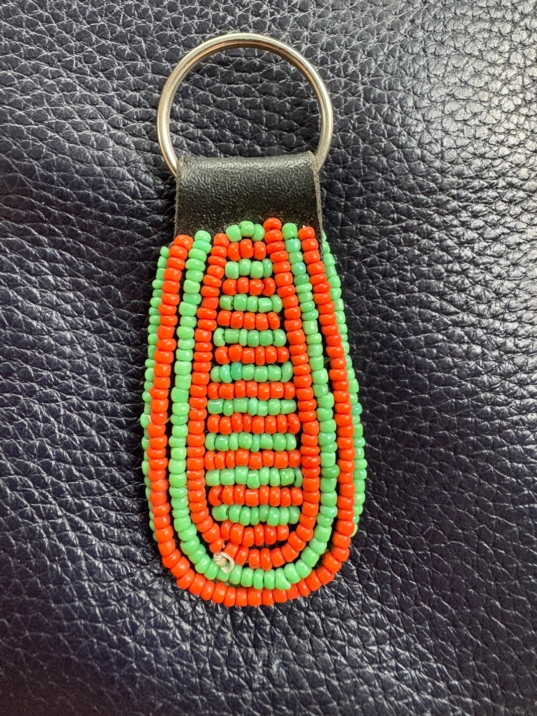 Handmade Beaded Keychain - Green & Orange - from South Africa