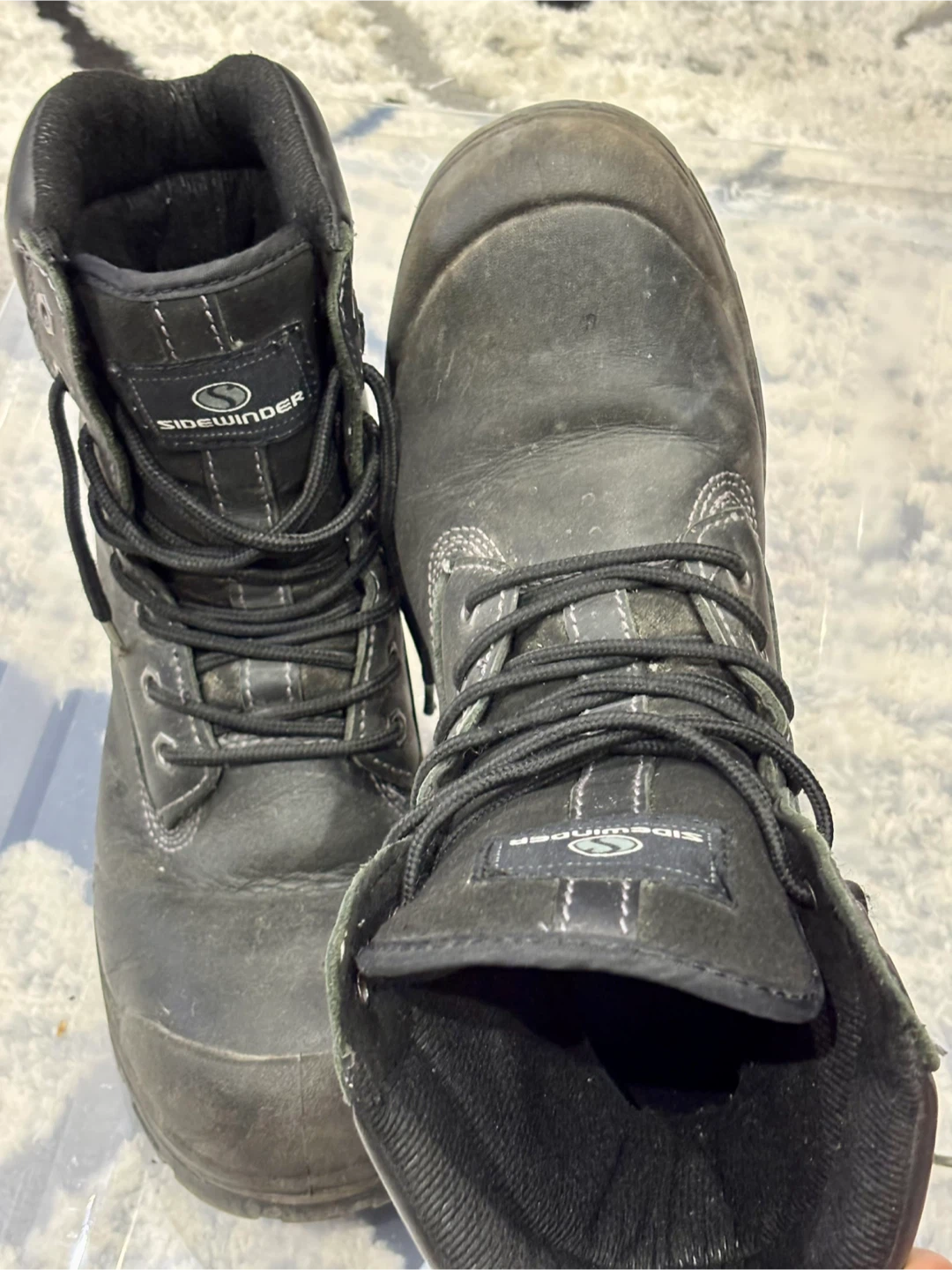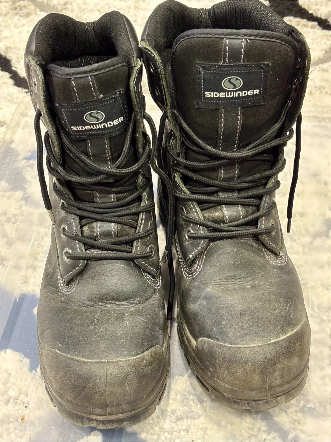 Selling a pair of Sidewinder Dominator 2.0 work boots in size 8. They show signs of wear but are still in good condition for tough jobs. These boots are insulated with 3M Thinsulate for warmth and are water-resistant. Perfect for anyone needing reliable work footwear!