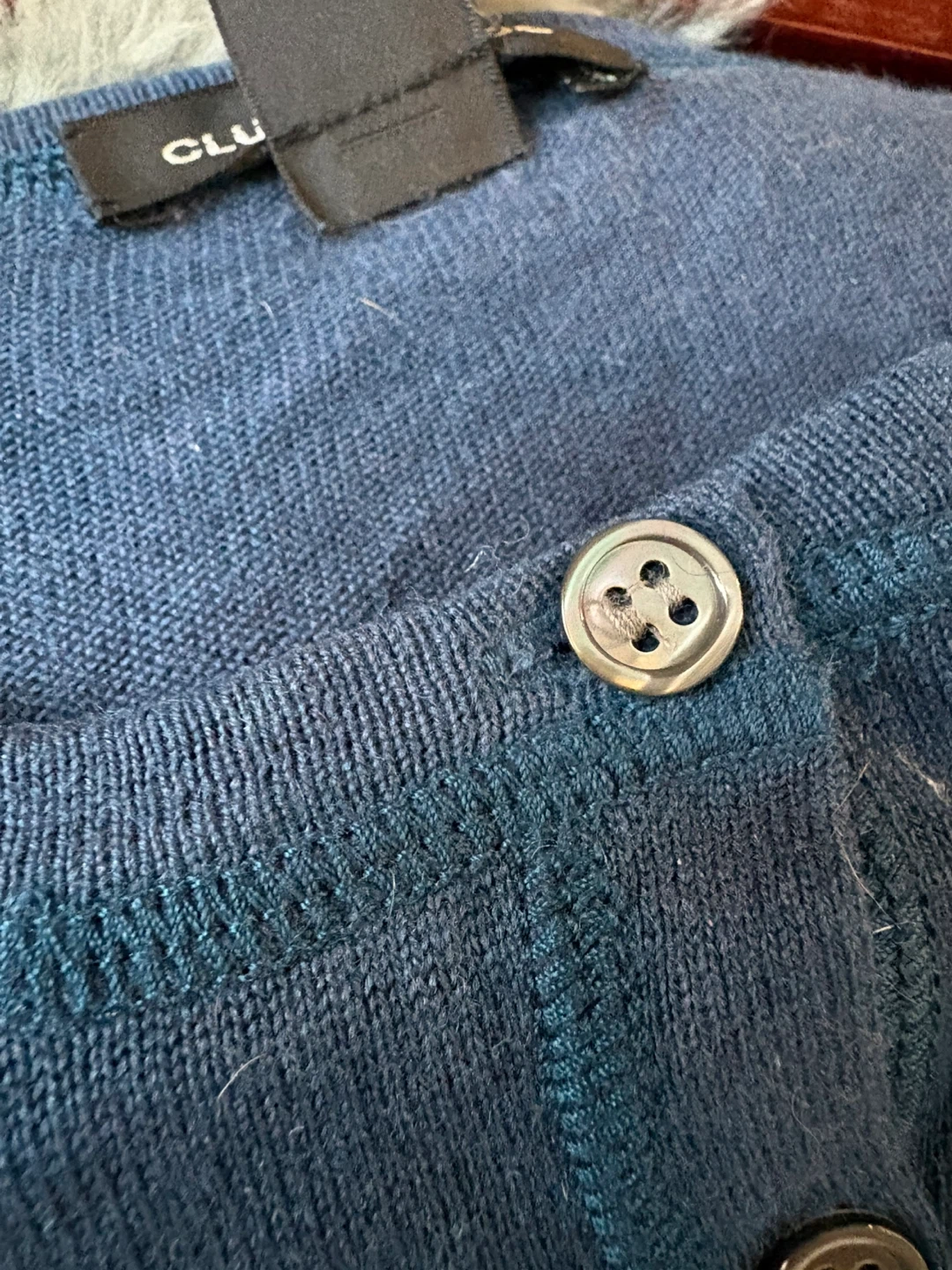 Here's a Club Monaco top in size medium. It's a lovely blue colour and made of 85% silk and 15% cashmere. It's in great condition and ready for a new home! It is labelled as medium but I think that it is more like a small.