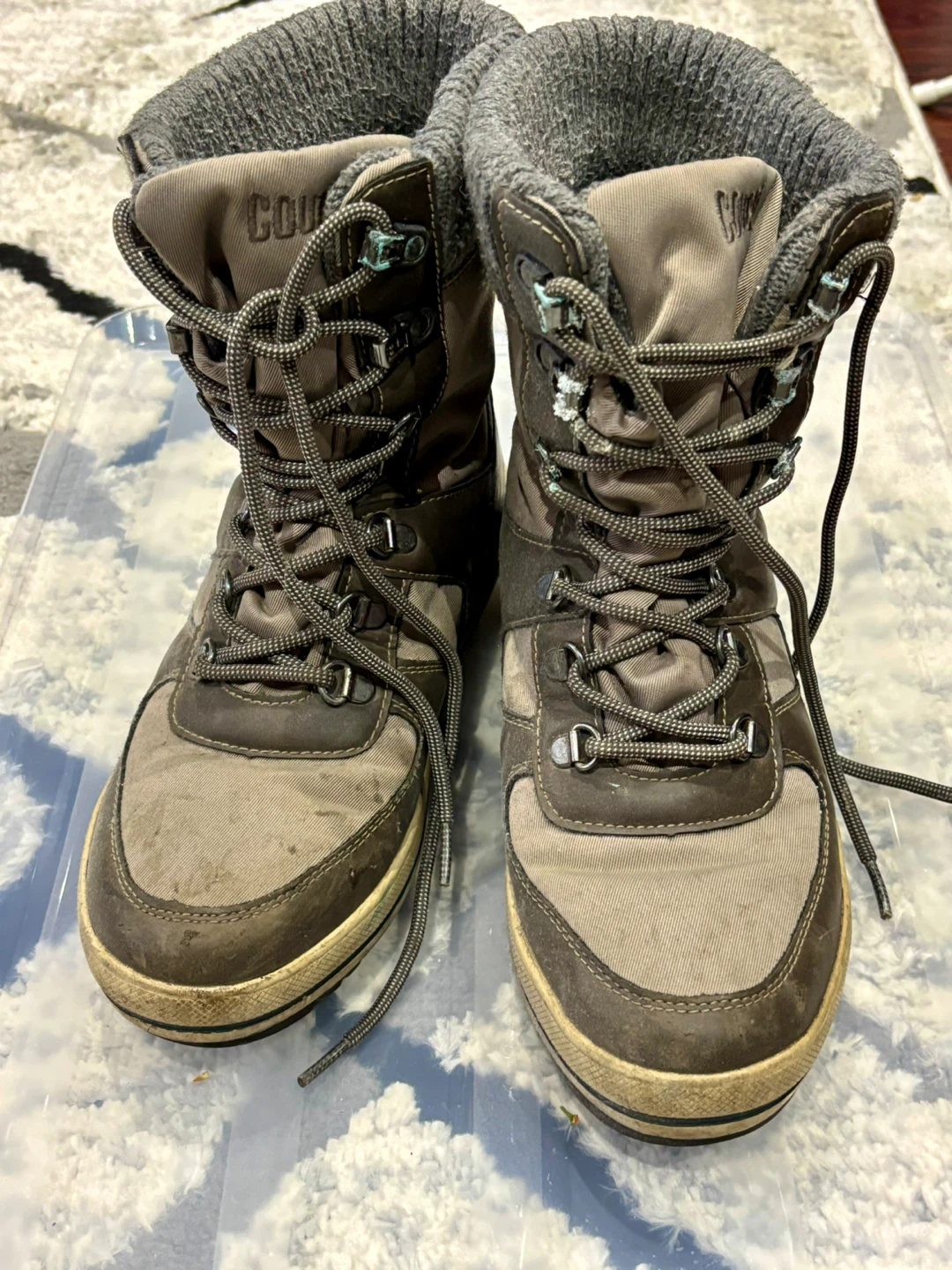 Selling a pair of Cougar Vergio winter boots for women in size 9M. They show some signs of wear, but are still in good condition for keeping your feet warm and dry this winter!