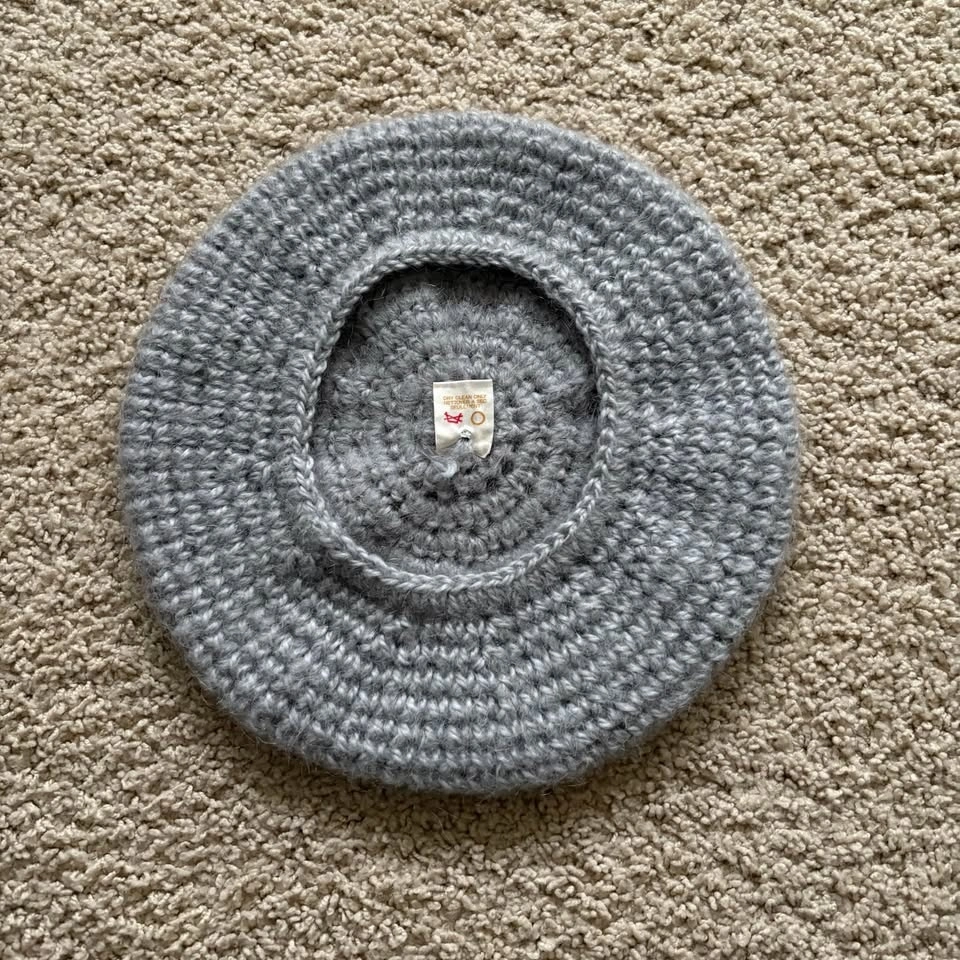 Vtg Handmade Mohair Wool Knit Beret Hat Made in Canada Fuzzy Slo