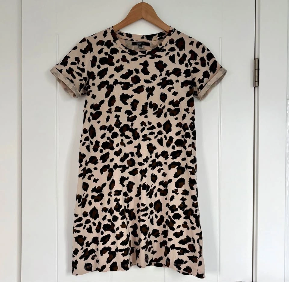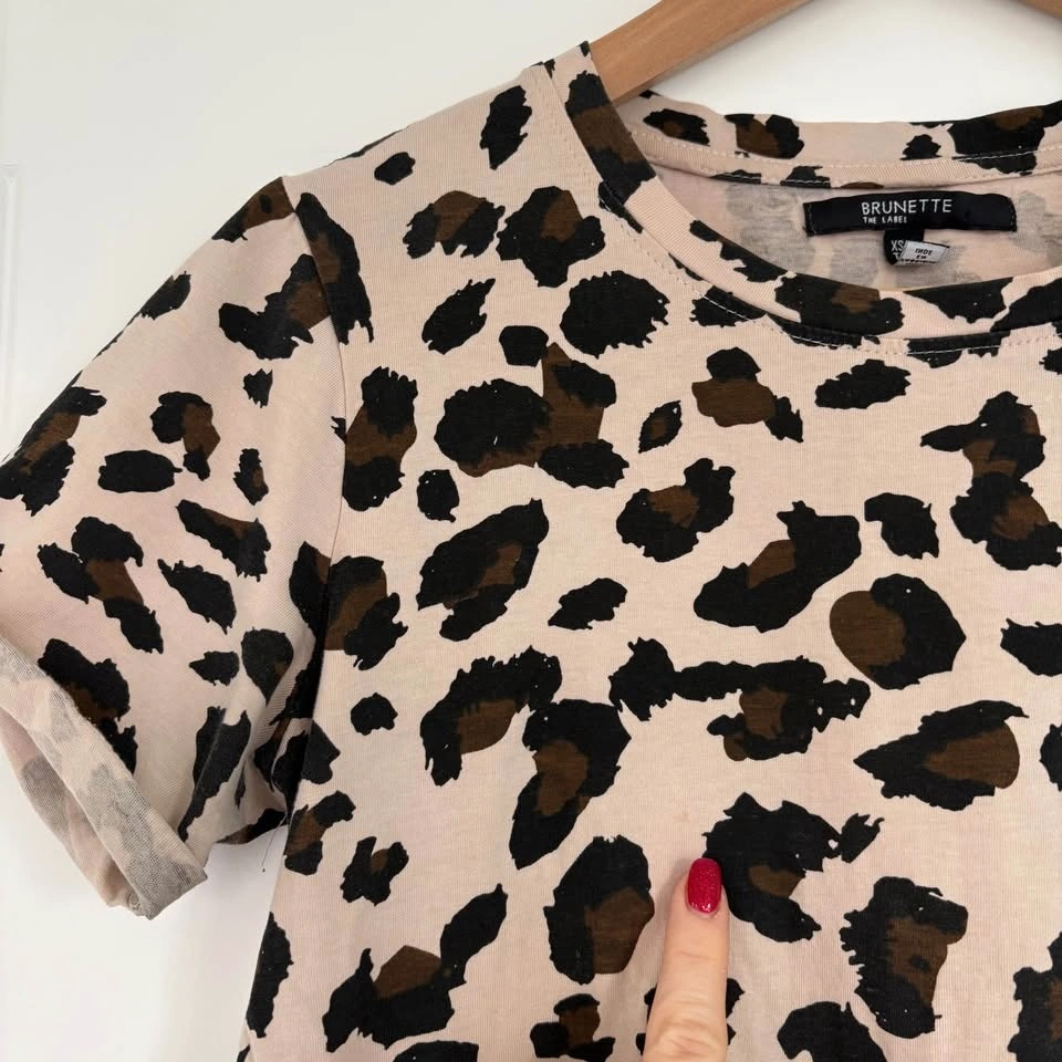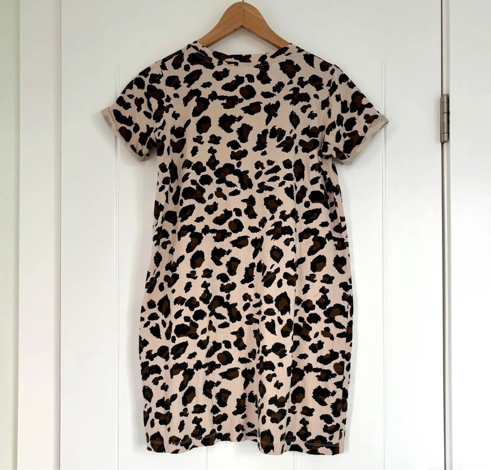 The "LEOPARD" Tee Dress is the perfect piece to take you through all four seasons. Relaxed fit and created in super soft cotton. Looks great with leggings and boots in fall/winter or sandals in the summer. Overall good condition with two small spots as shown in the photos. The model photos are included to illustrate fit only.