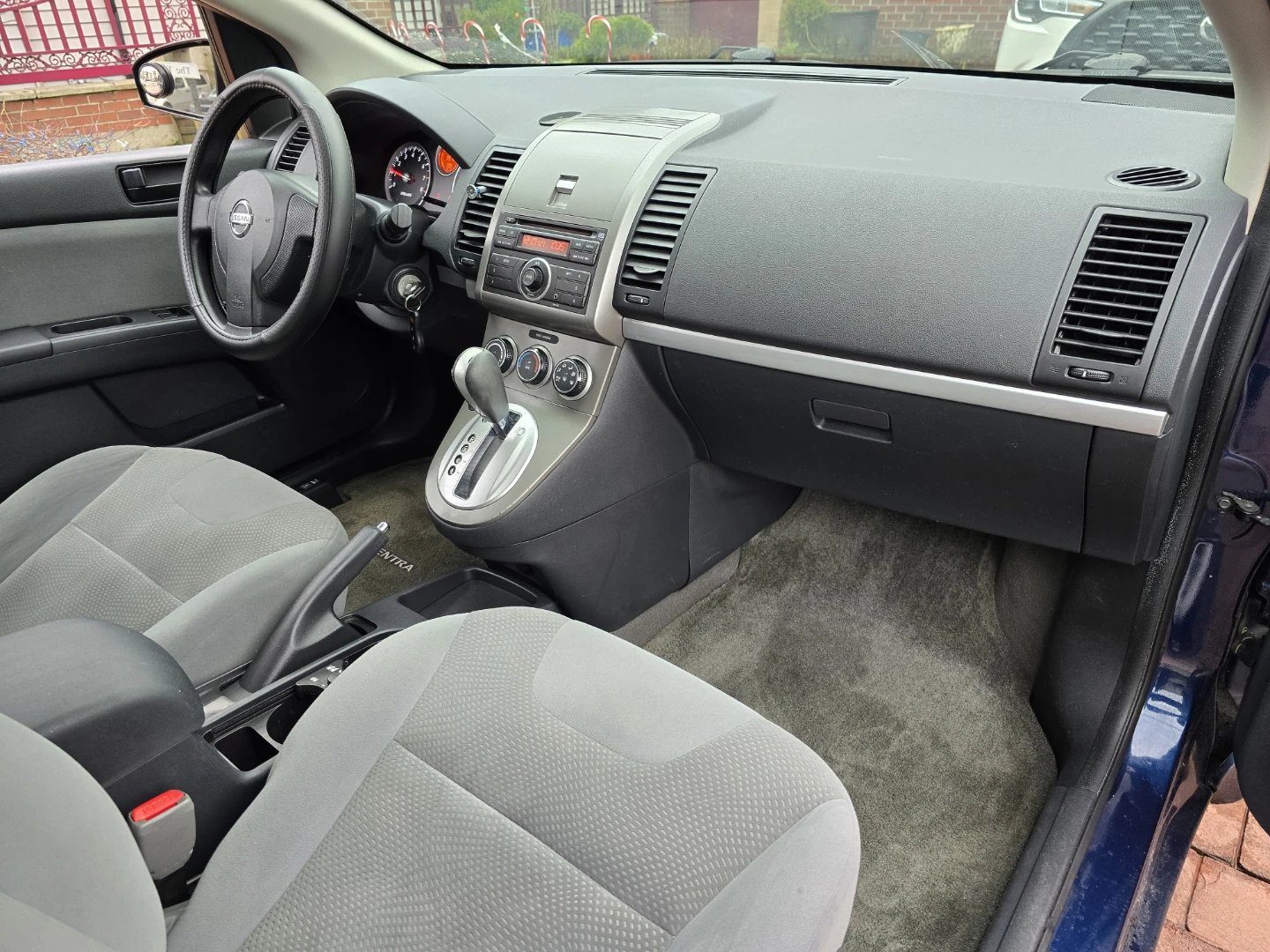 Selling a Nissan Sentra sedan. It's blue and has some wear and tear, as you can see in the photos. Great for someone looking for a reliable car!