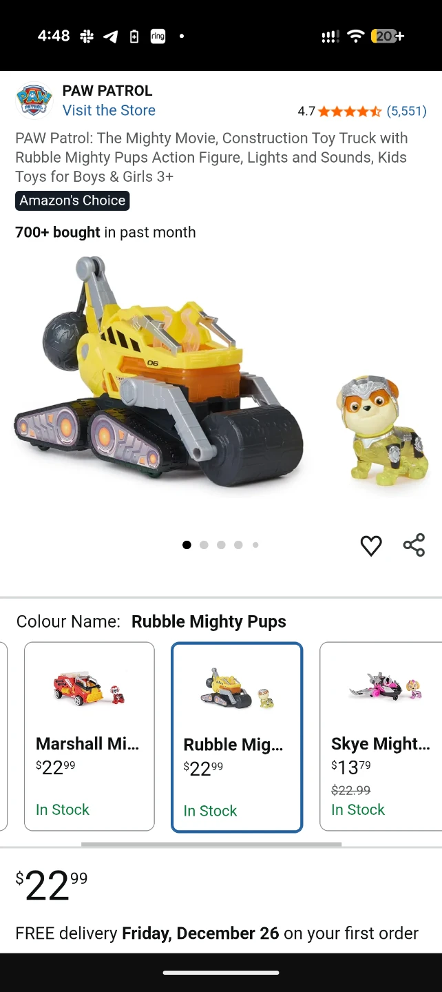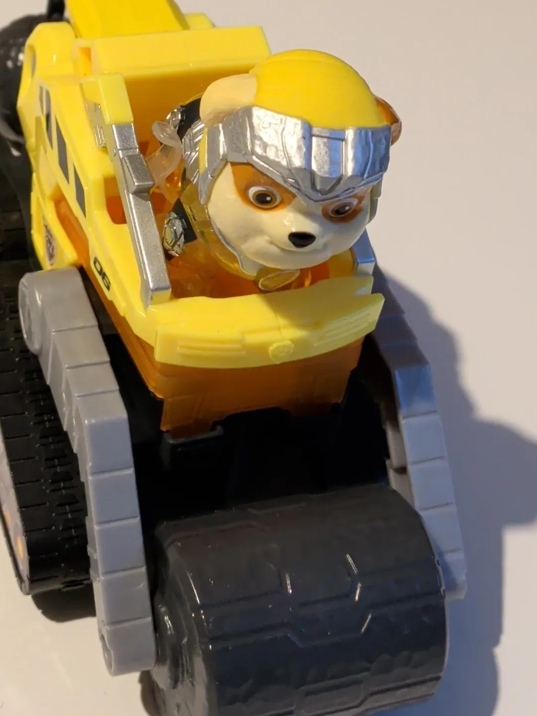 Selling Rubble's Mighty Pups Construction Truck from Paw Patrol! This toy features lights and sounds for extra fun. Perfect for kids ages 3 and up!