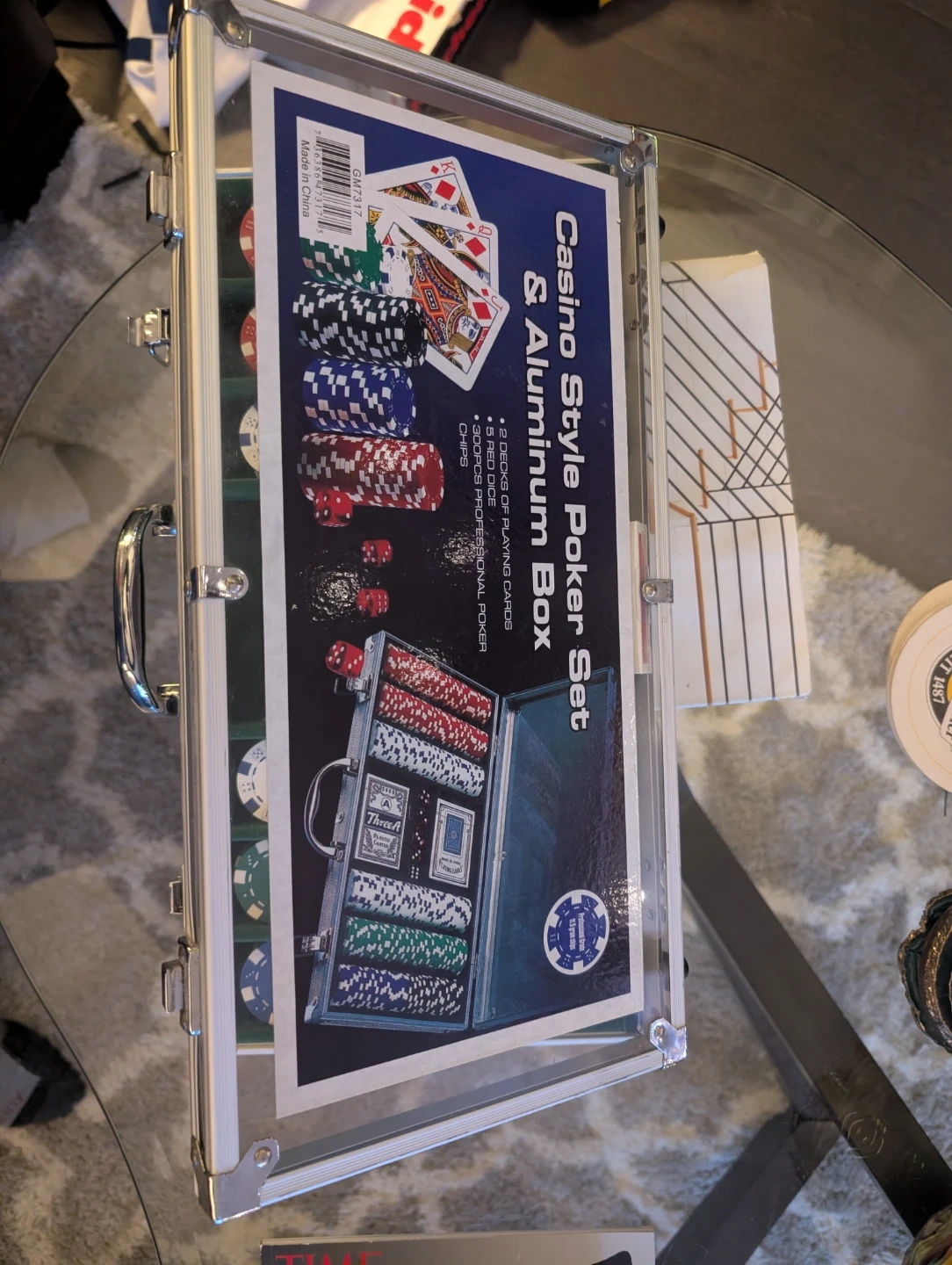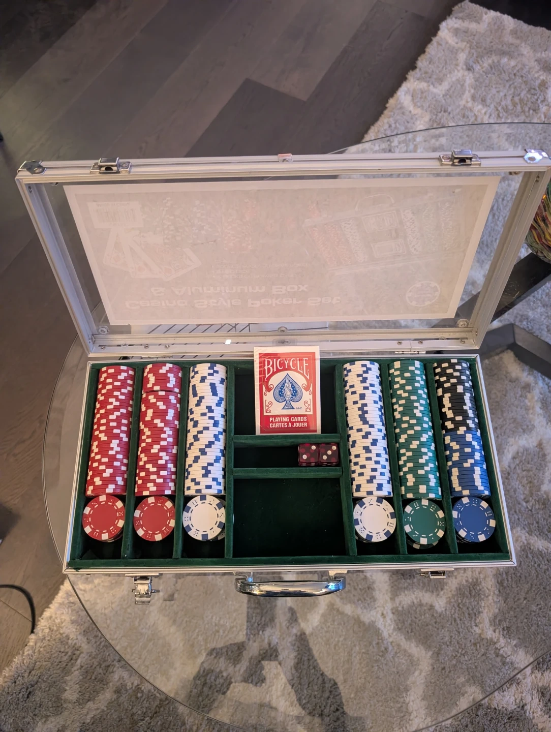 Selling a Casino Style Poker Set with an aluminum cade! It includes a brand new deck of bicycle playing playing cards and professional poker chips. Perfect for your next poker night with friends!
