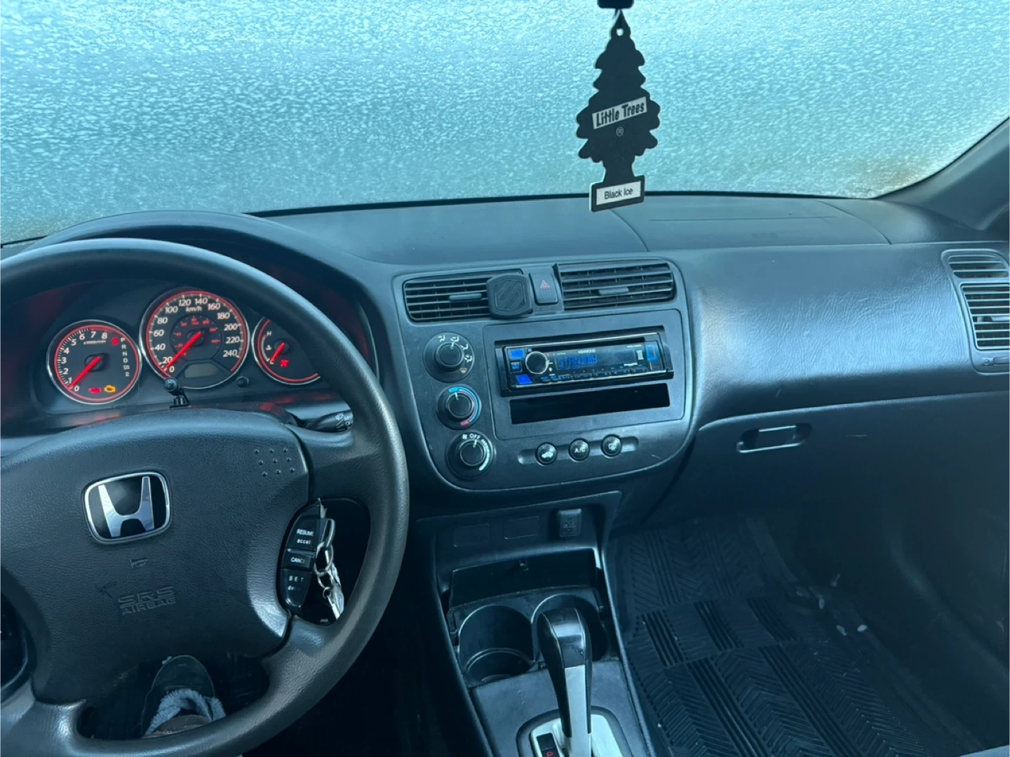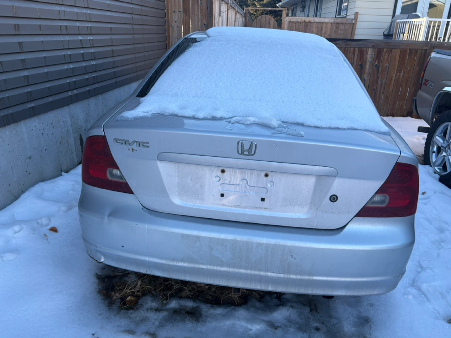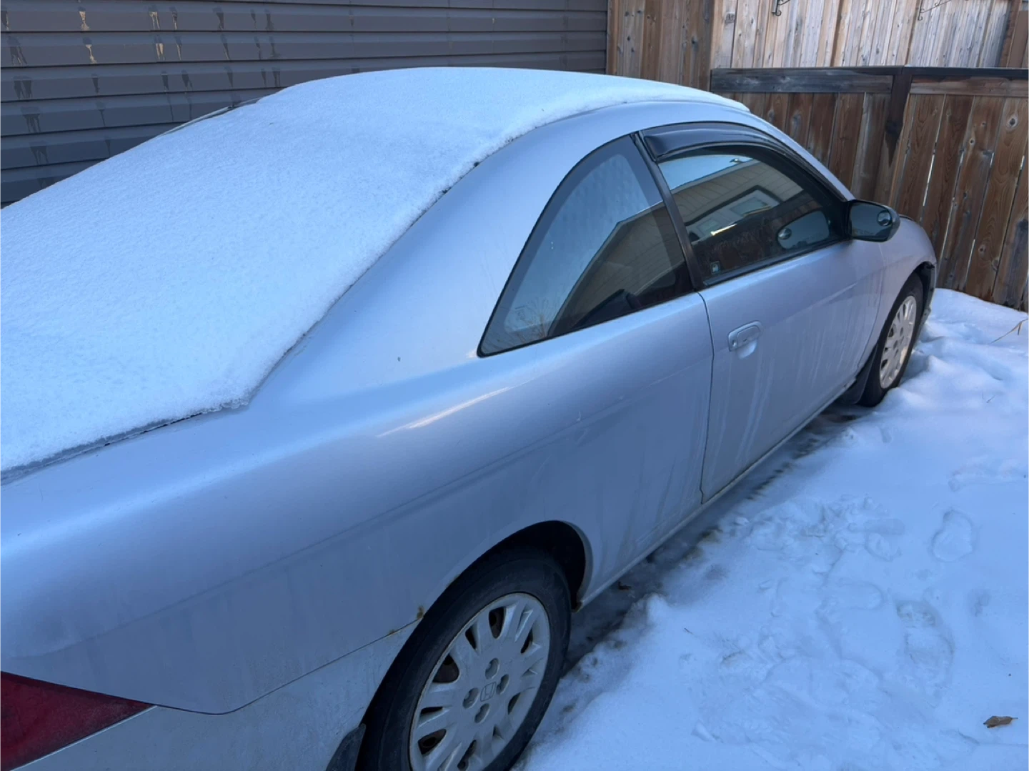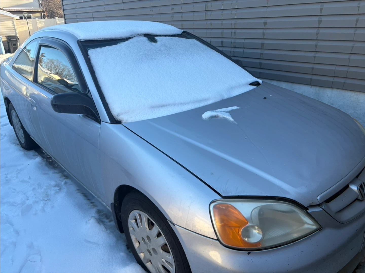 Selling a Honda Civic Coupe. It's silver and in used condition. Please take a look at the photos for the condition of the car. Check engine light is on however am still using it