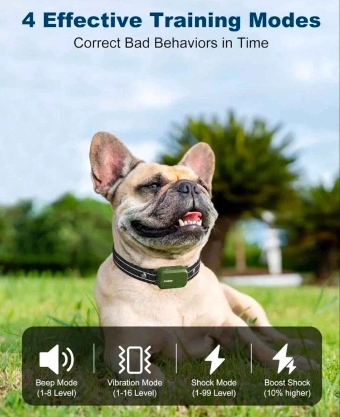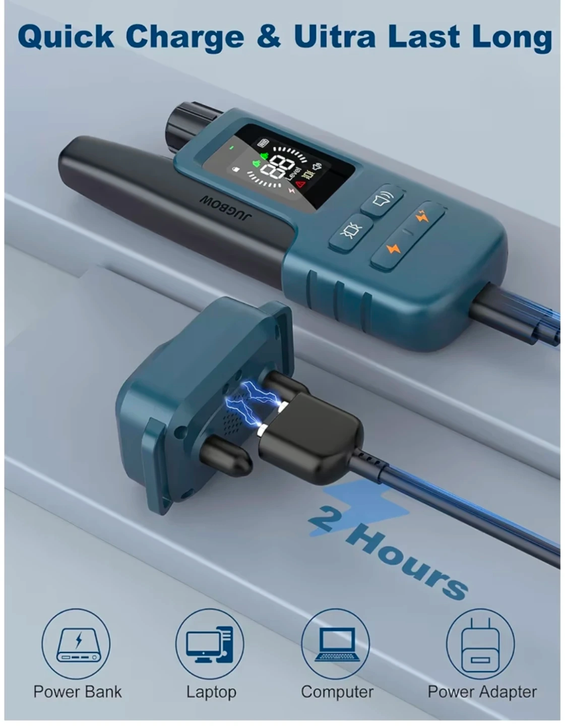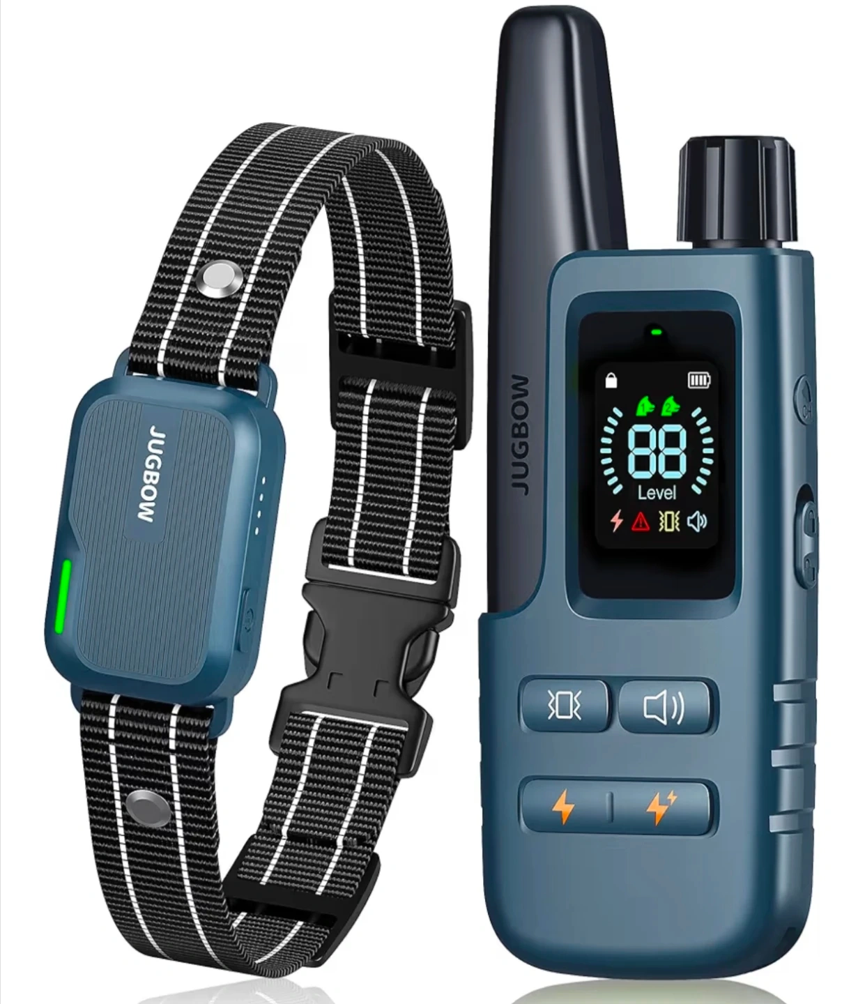 This JUGBOW dog training collar is designed to correct bad behaviours in time. It features 4 effective training modes: beep, vibration, shock, and boost shock.