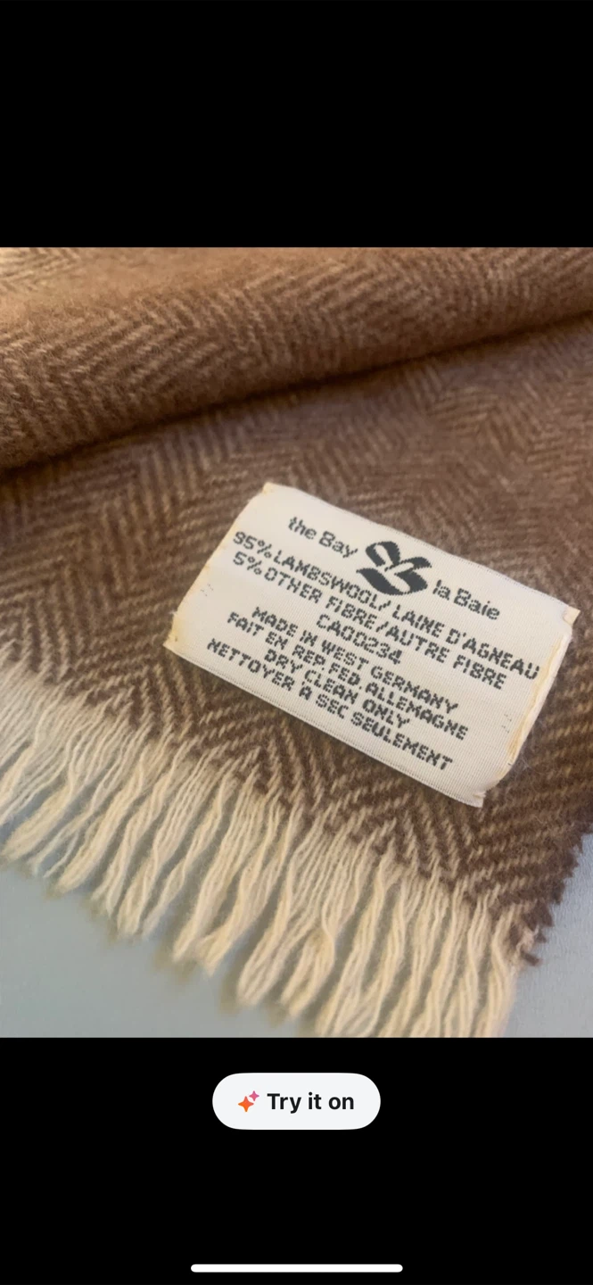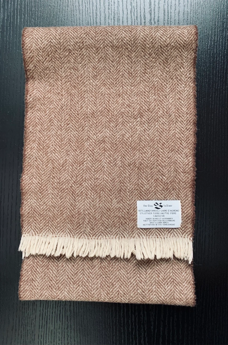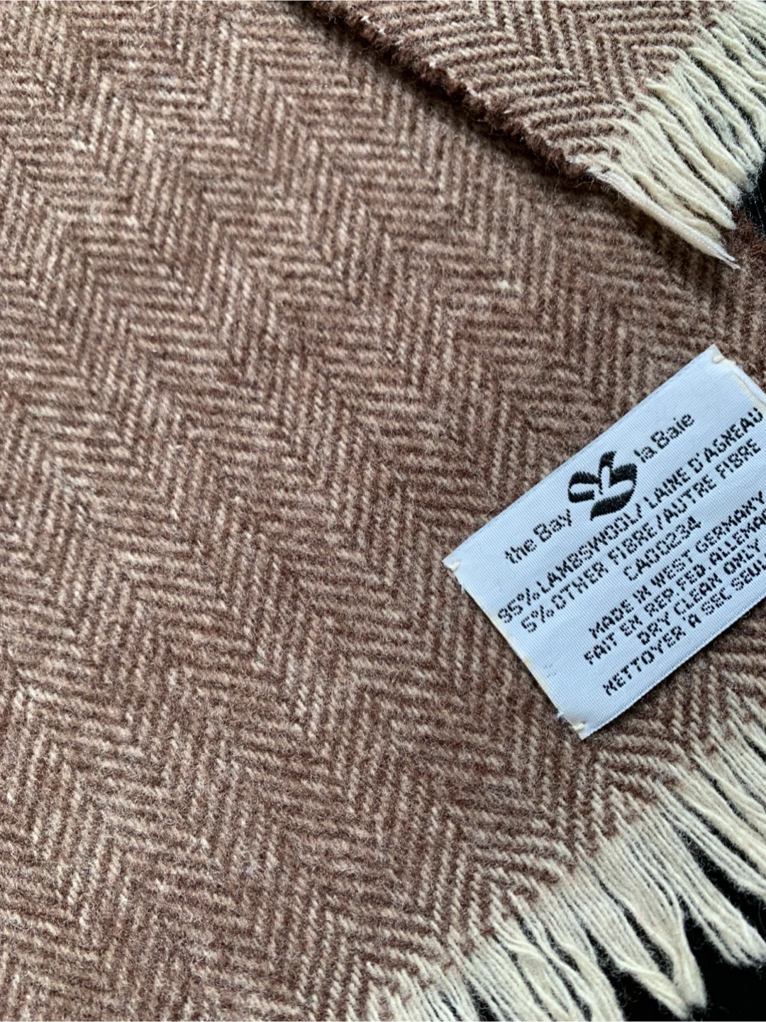 •The Bay (La Baie), made from 95% pure lambswool which is associated with Hudson's Bay Company quality products in a classic herringbone pattern in warm brown and cream colour- made in West Germany.