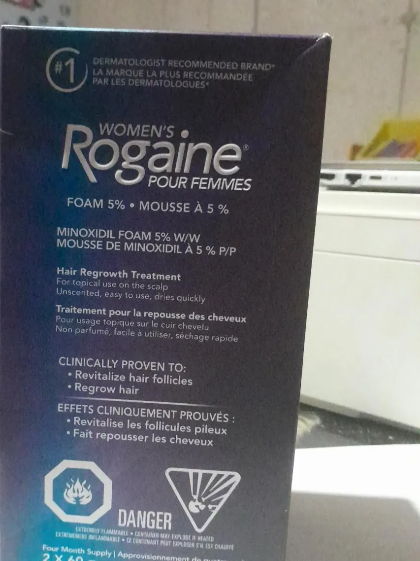 I'm selling a brand new box of Women's Rogaine Foam 5%. This is a hair regrowth treatment that's clinically proven to revitalize hair follicles and regrow hair. It's unscented, easy to use, and dries quickly. The box includes a four-month supply, with 2 x 60 ml cans inside.