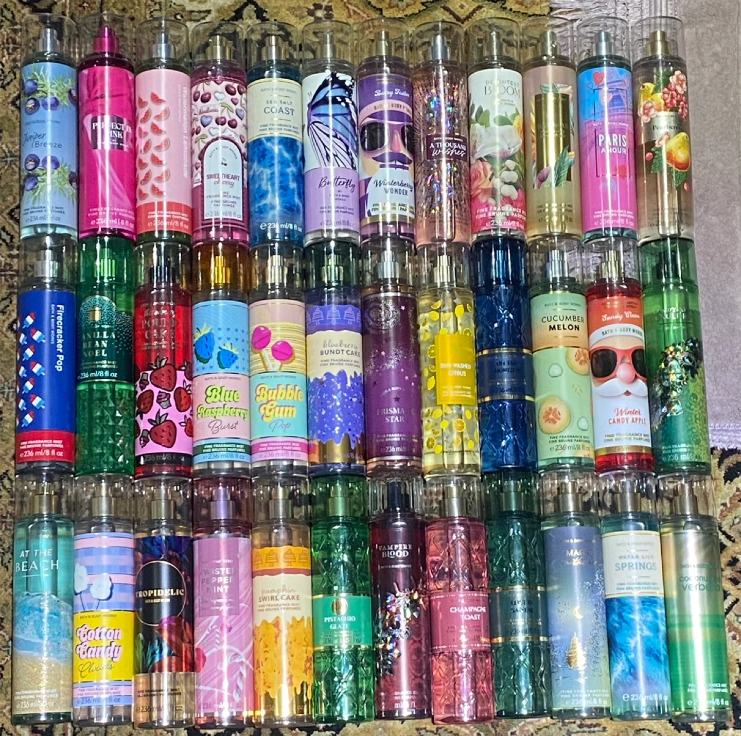 Selling a variety of Bath & Body Works Fine Fragrance Mists! Each bottle contains 236 ml / 8 fl oz. Lots of different scents to choose from, like Winter Candy Apple, Champagne Toast, Cotton Candy Clouds, and more! Perfect for freshening up your day