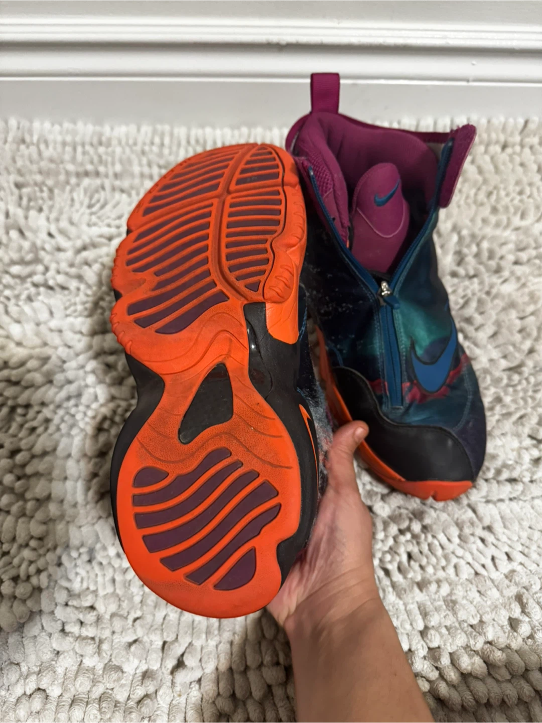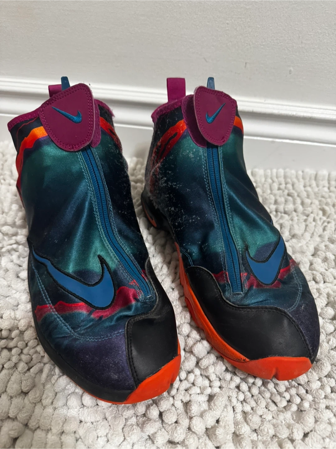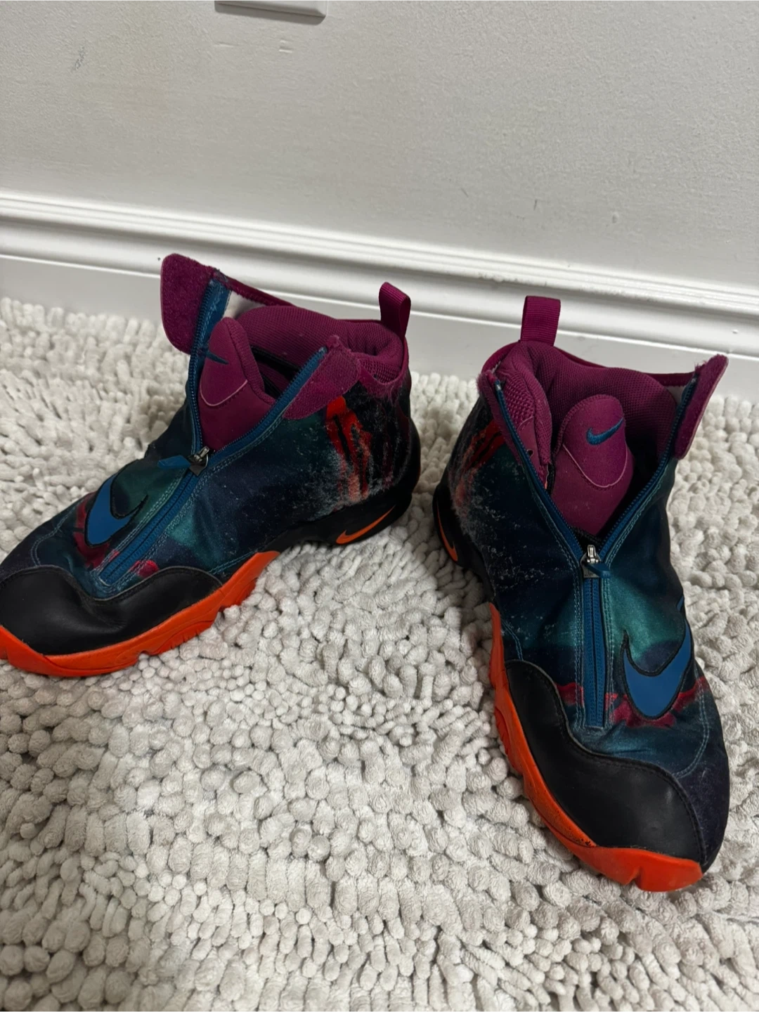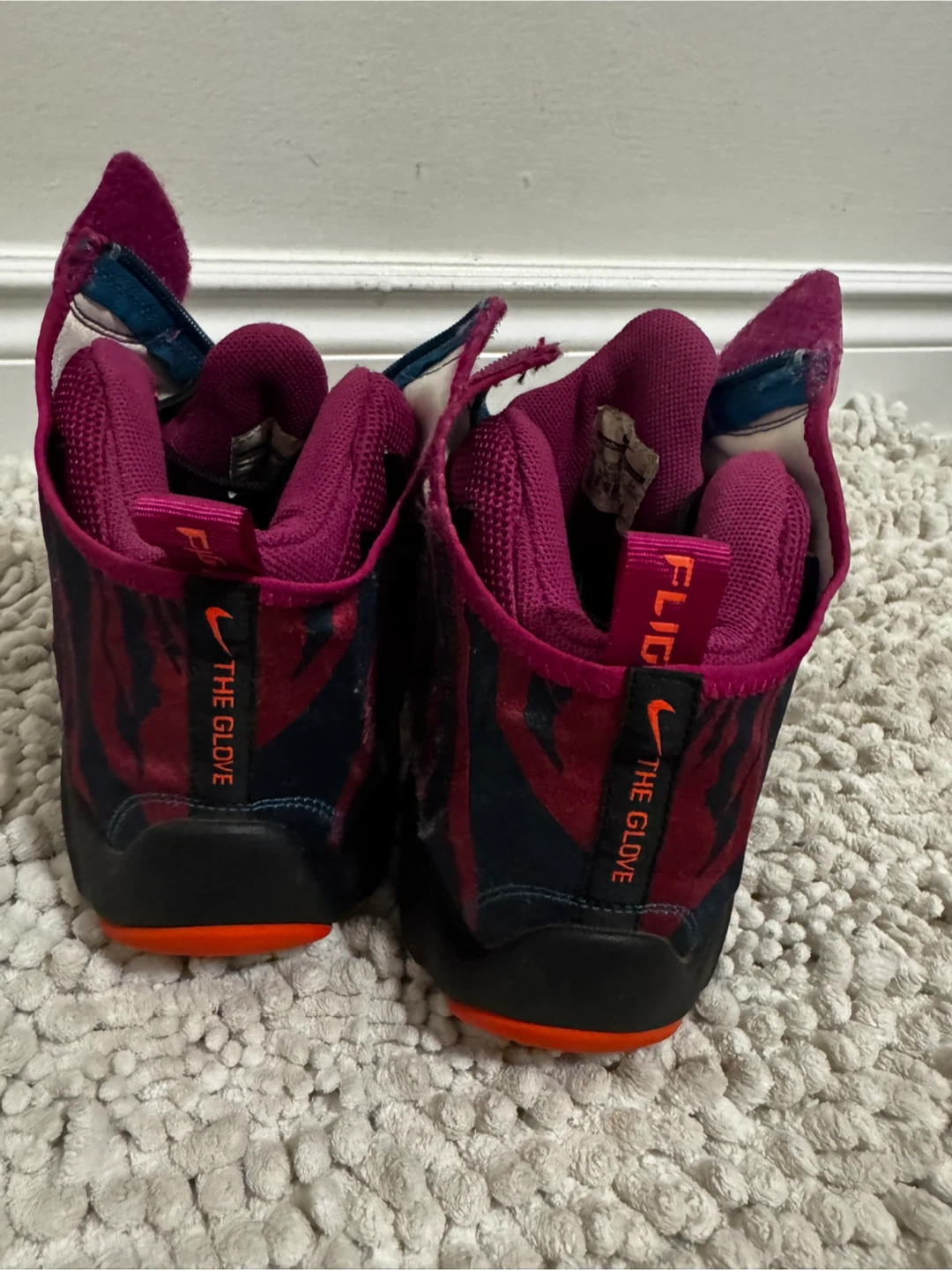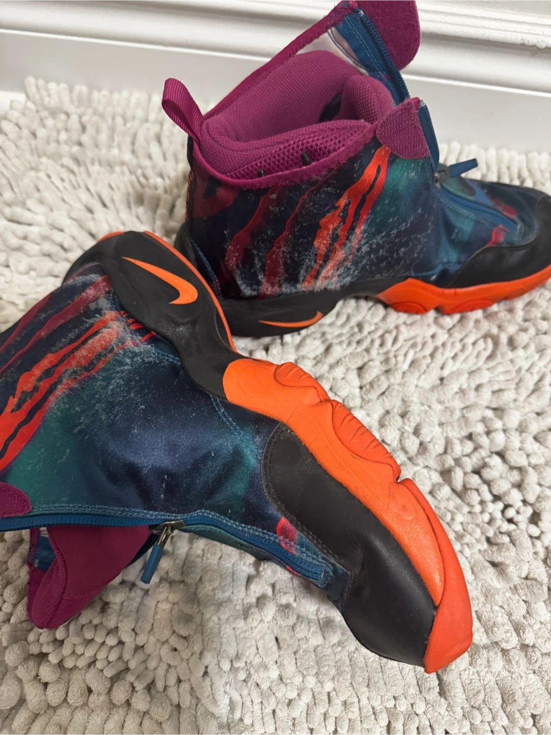 Selling a pair of Nike Air Zoom Flight The Glove shoes. They are a size 9 and have a unique design with a zipper closure. They show some signs of wear but still have plenty of life left!