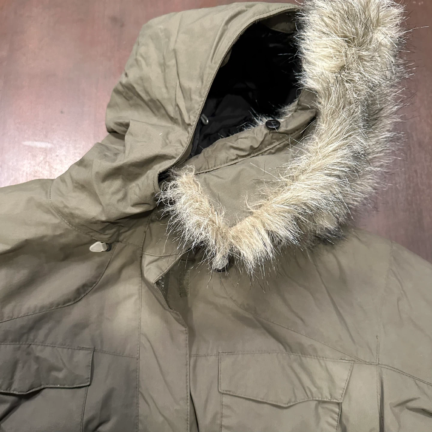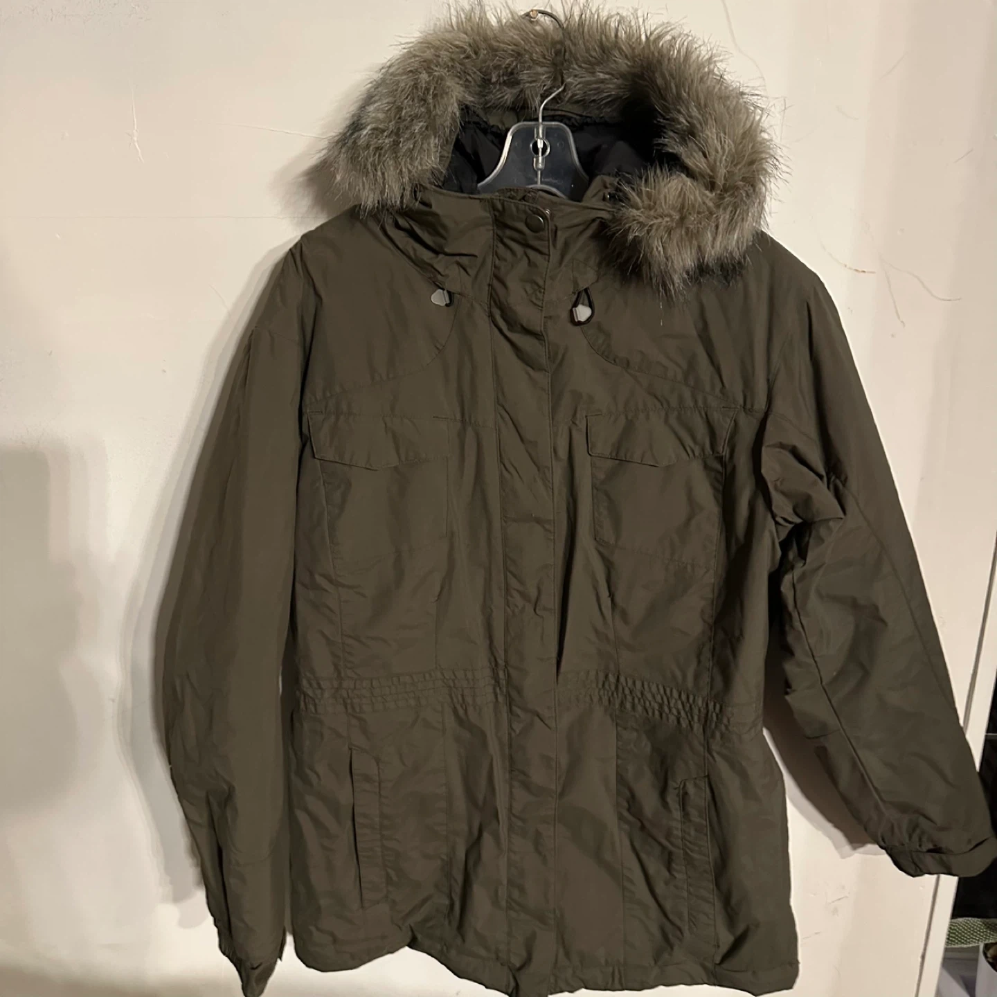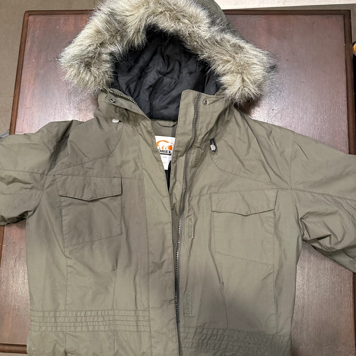 I'm selling a Sorel winter parka in a lovely olive green colour! It's perfect for staying warm during the colder months. The parka features a faux fur-trimmed hood and plenty of pockets for all your essentials. It's in new condition never worn ( no tags)