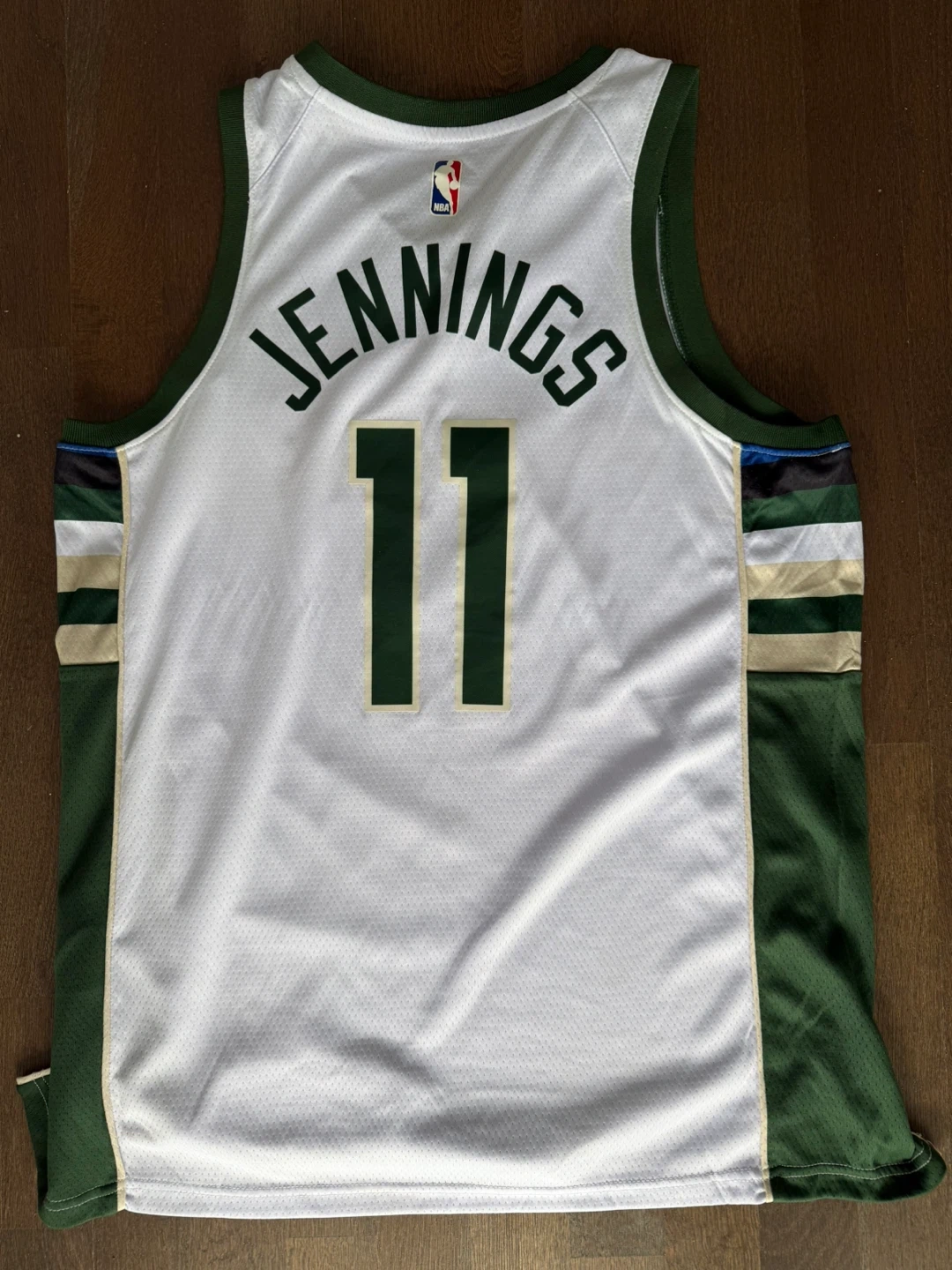 Selling a Nike Bucks jersey with Jennings' #11. It's a size 48. The jersey is in good condition and ready for a new fan!