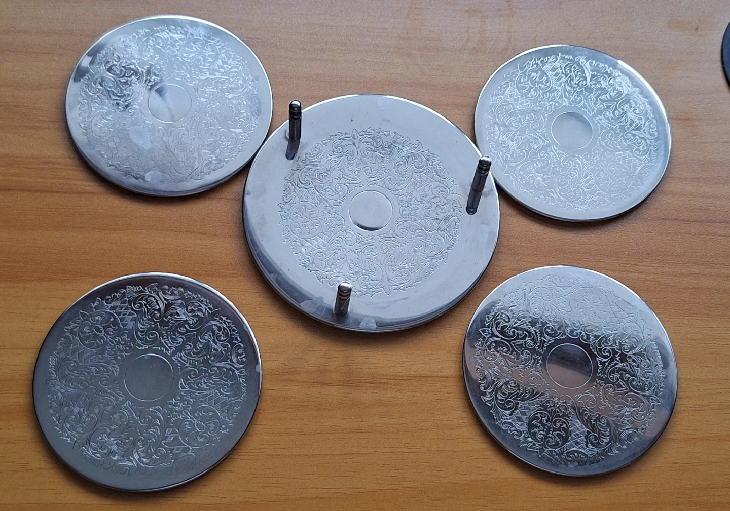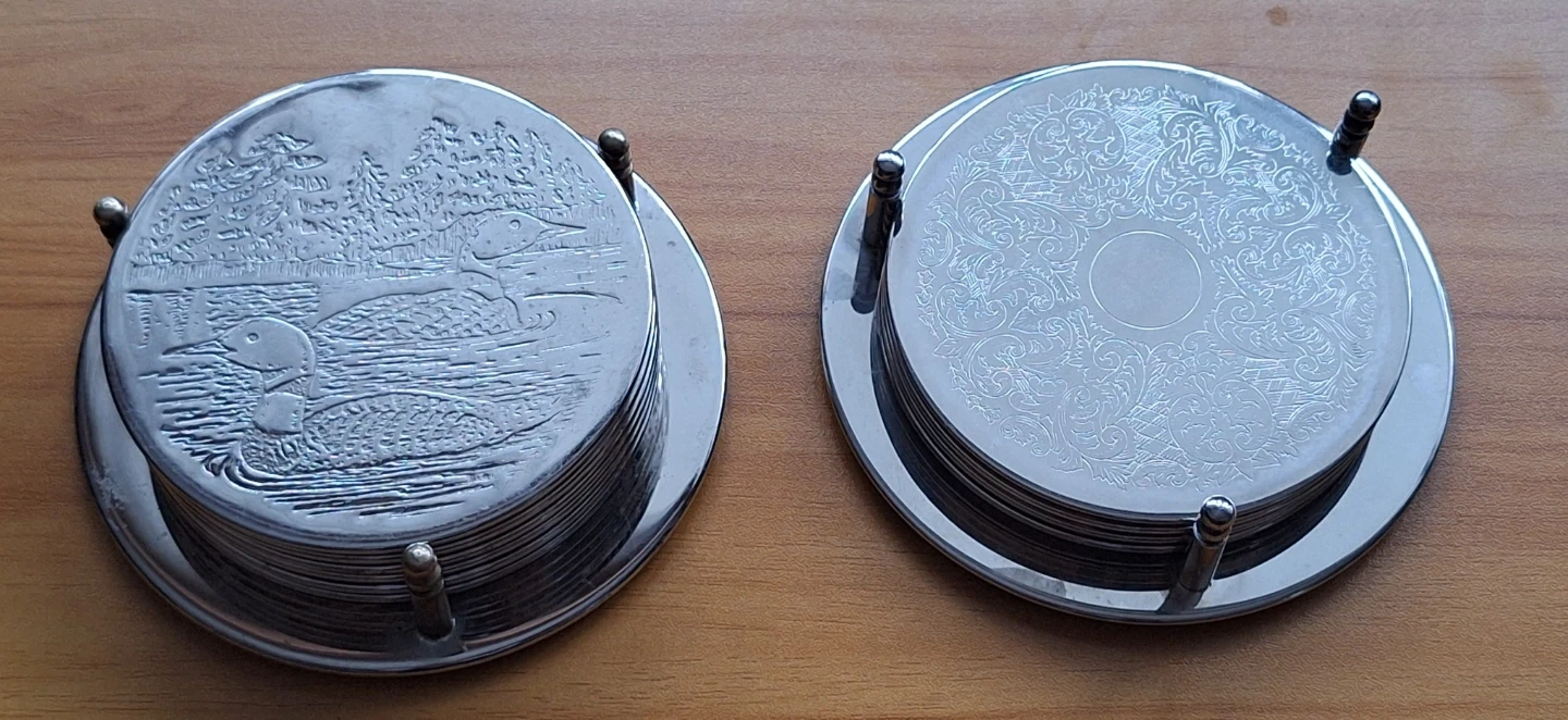 2 sets (1 left) of vintage silver-plated coasters