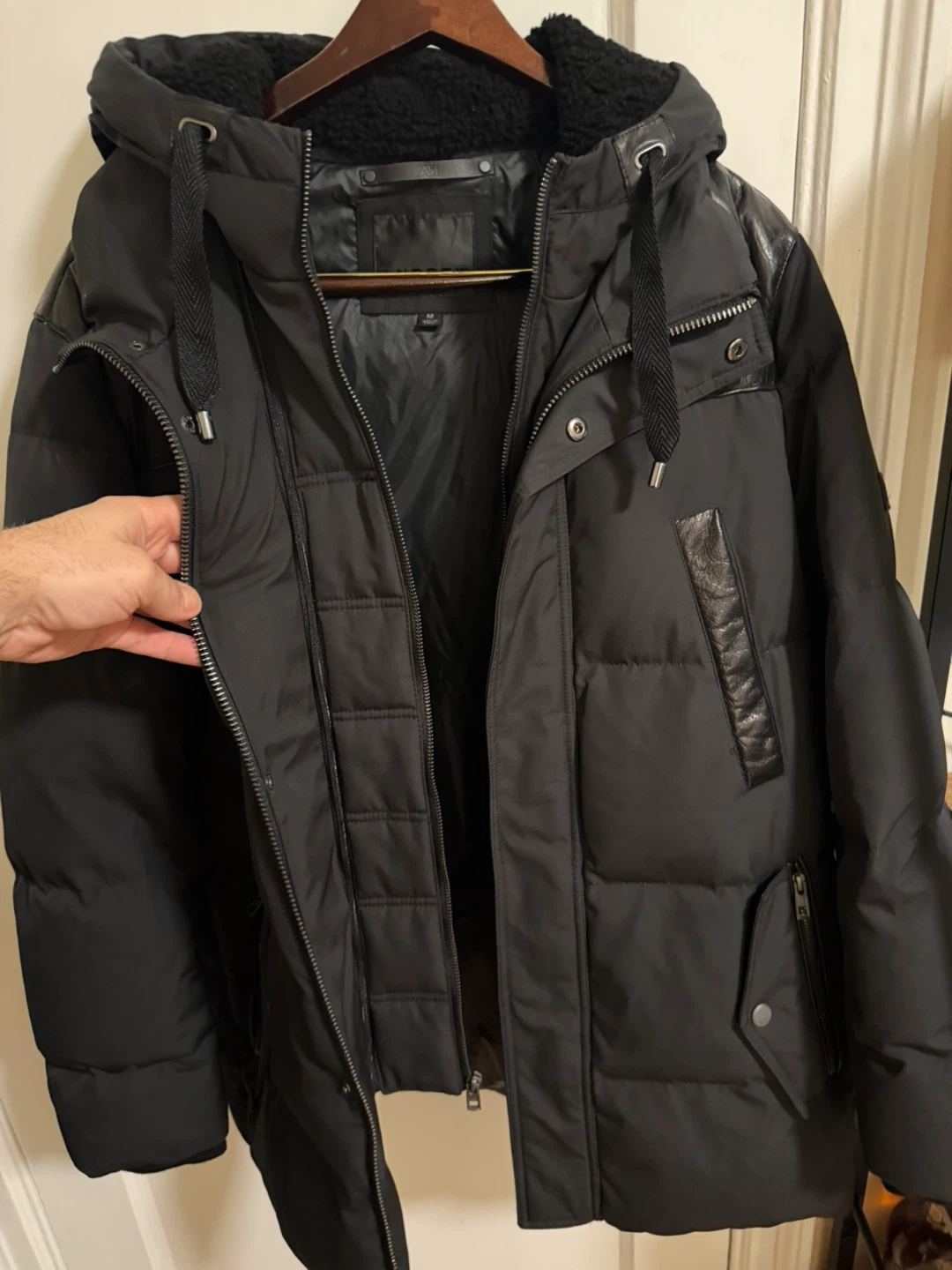 Selling a stylish Andrew Marc puffer jacket in black, size Medium, in perfect, like-new condition — worn minimally.