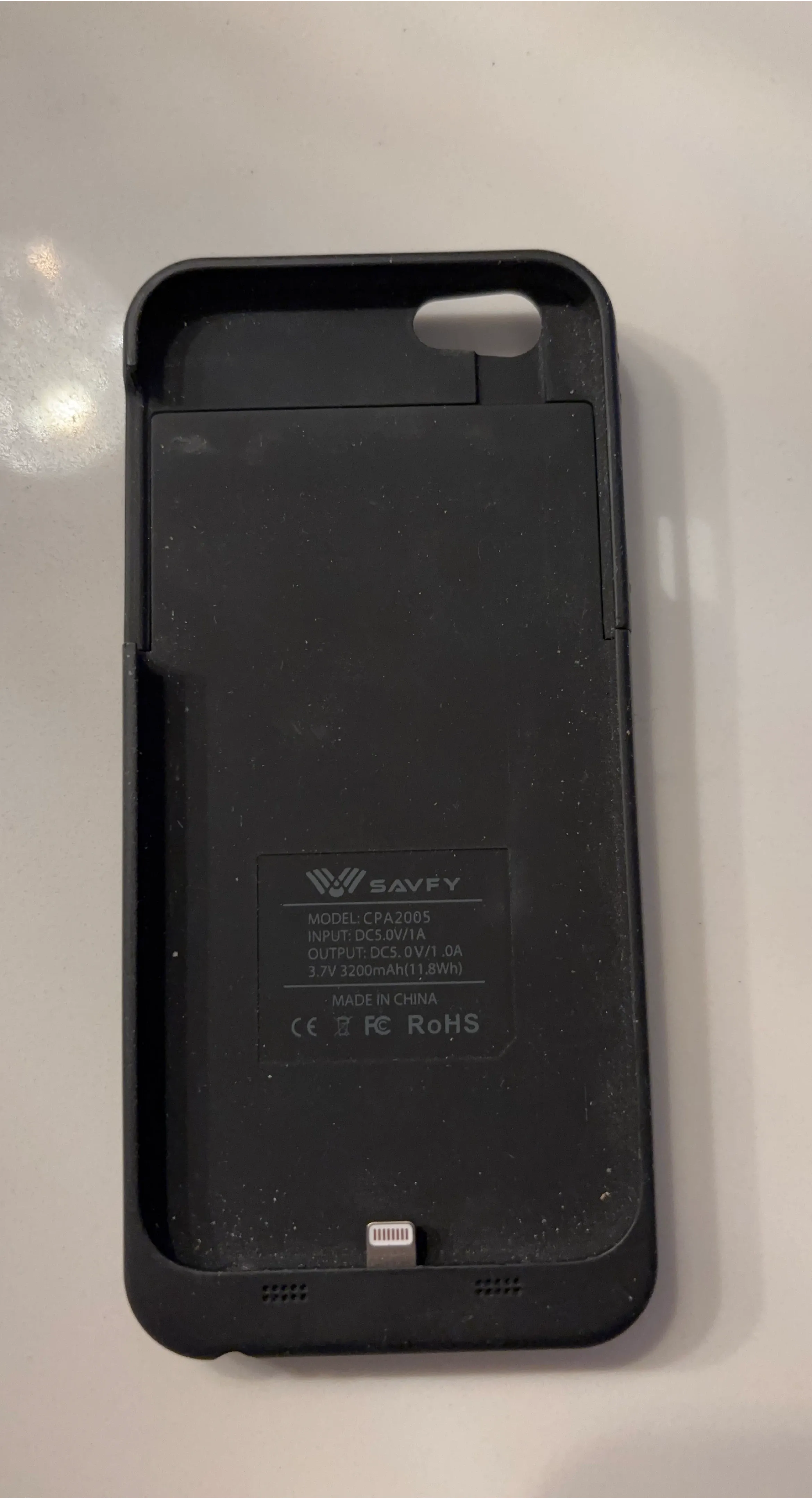 Selling a Savfy iPhone 6 CPA2005 battery case. It's in good condition and ready to use! It has an input of DC5.0V/1.0A and an output of DC5.0V/1.0A. The battery is 3.7V 3200mAh (11.84Wh). Also has optional magnetic mount.