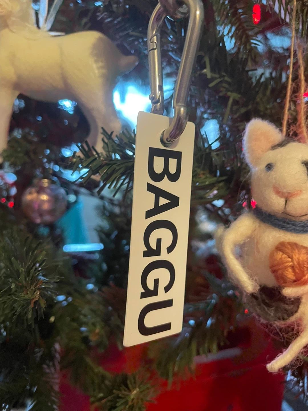 Selling a brand new with tags BAGGU logo keychain in lilac .