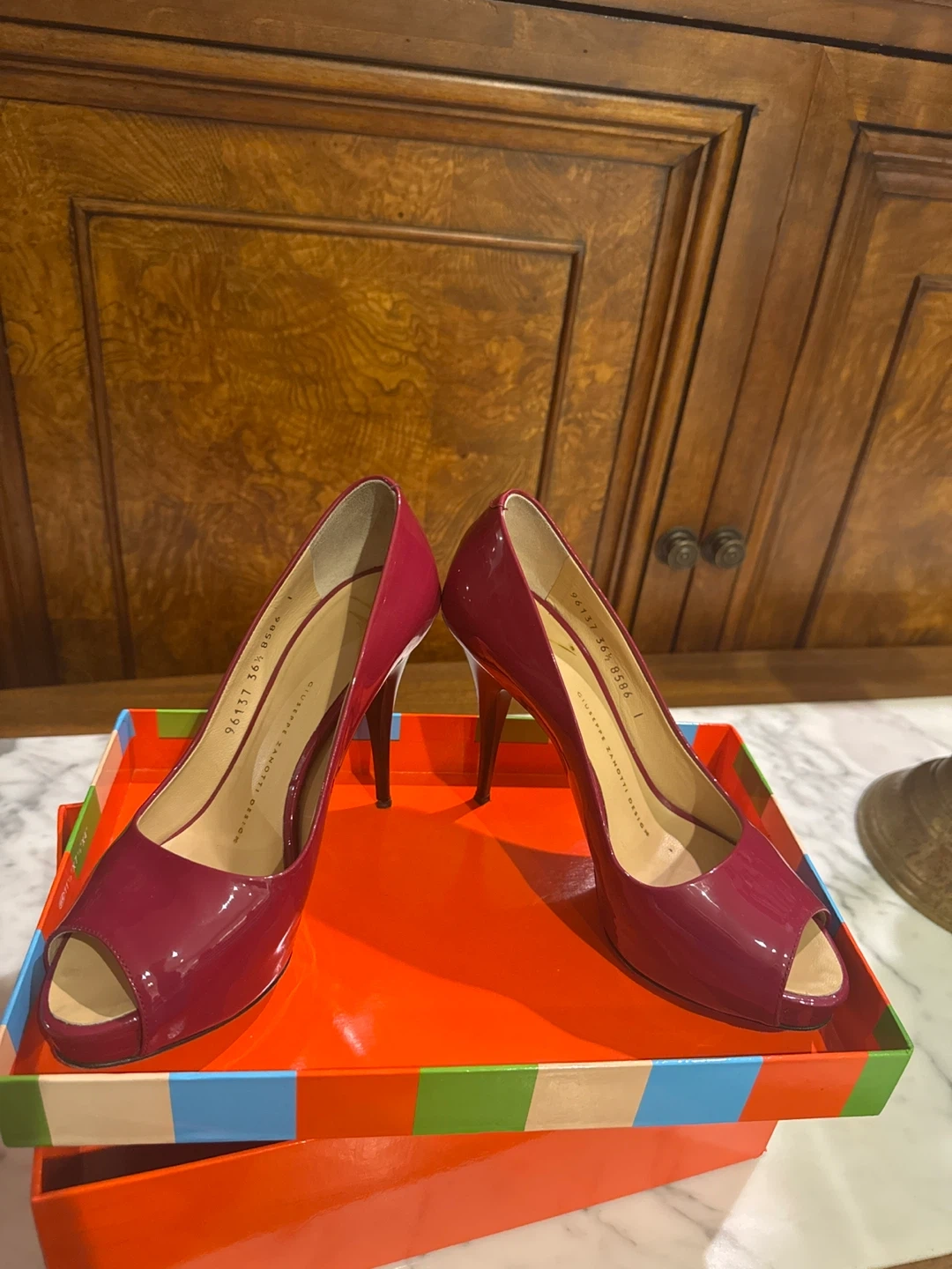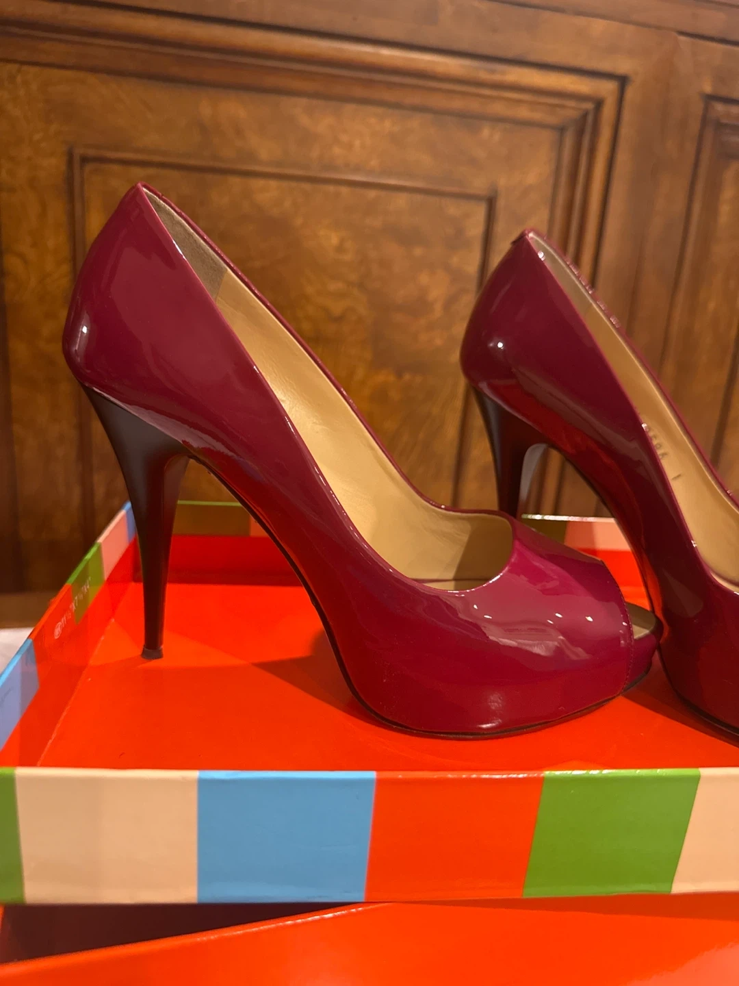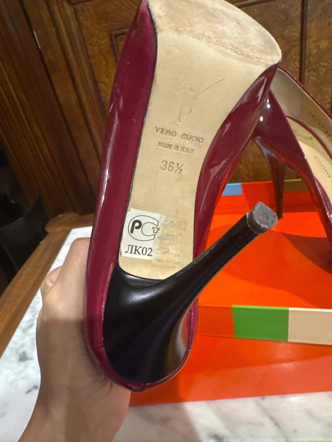 These are a pair of Giuseppe Zanotti heels in a beautiful red patent leather. They are a size 36.5, which is approximately a US size 6.5. They come with a red box!