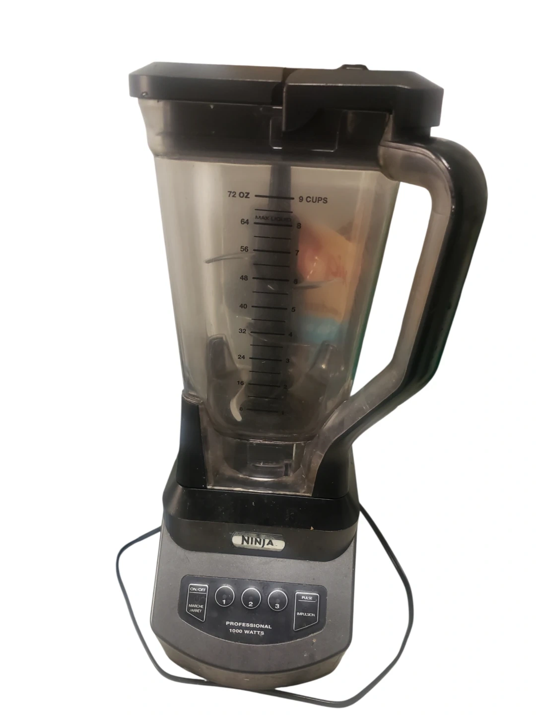 Selling a Ninja Professional blender, 1000 watts. The blender has a capacity of 72 oz or 9 cups. It has different speed settings and a pulse function