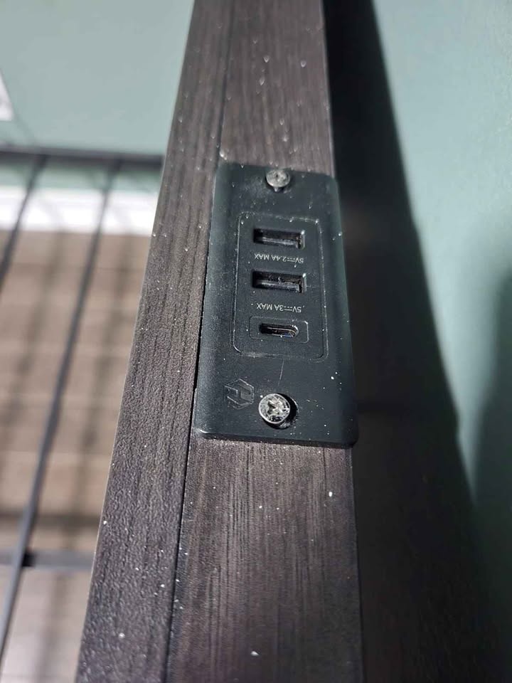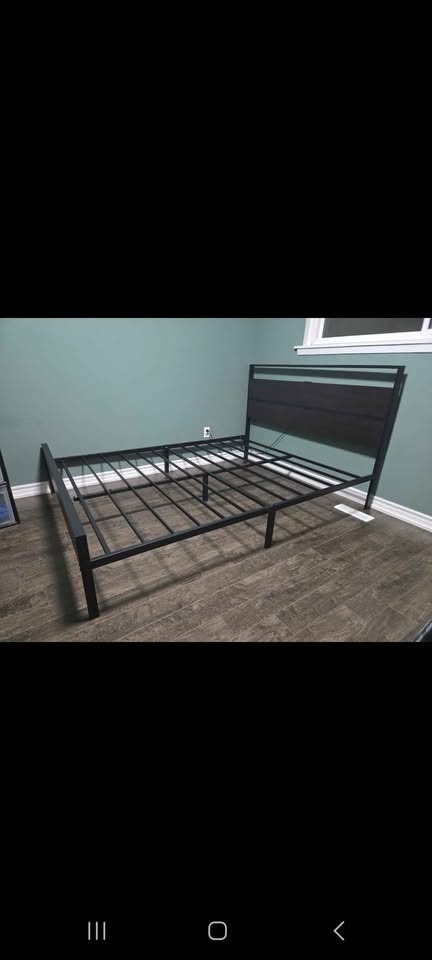 Queen size bedframe with all hardware included. (Currently disassembled-have all parts).Easy to assemble.