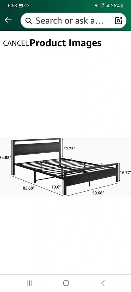 Queen size bedframe with all hardware included. (Currently disassembled-have all parts).Easy to assemble.